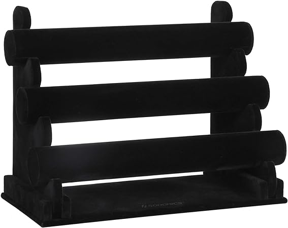 Deze organizer met 3 verdiepingen biedt je een optimale manier om je sieraden te tonen, te organiseren of te verkopen, of het nu gaat om horloges, armbanden, banden, enz. Deze fluweelzachte standaard ziet er geweldig uit op elke toonbank of op de markt en zelfs in de kast. Het beste is dat de 3 stangen afneembaar zijn voor opslag wanneer ze niet in gebruik zijn. Het is een uitstekend cadeau voor je vrouw of vriendin.