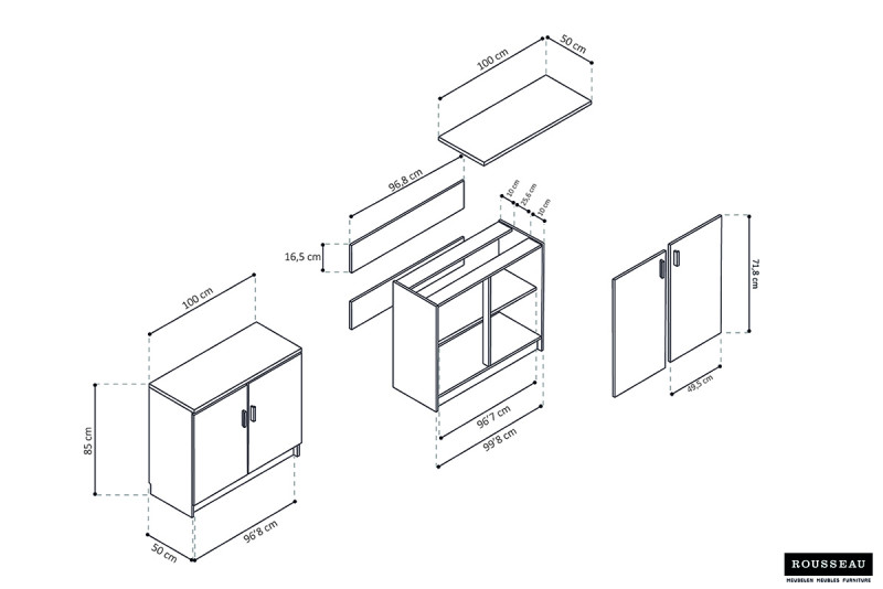| Bullet Point 3 | AFMETINGEN: Afmetingen: H-H 85 x B-L 100 x D-P 50 cm, perfect voor elke ruimte. |