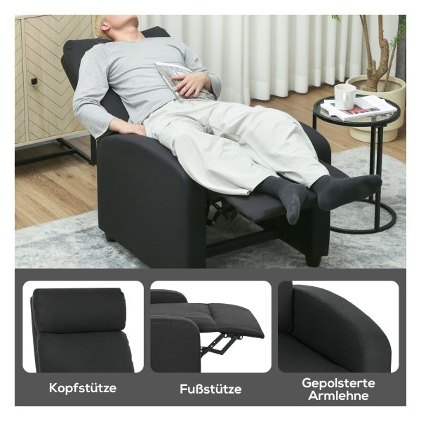 Geniet van ultiem comfort met deze ontspanningsstoel van HOMCOM. Verstelbare ligpositie, luxe padding, ademende stof en stevig stalen frame. Perfect voor lezen, TV kijken of een dutje.