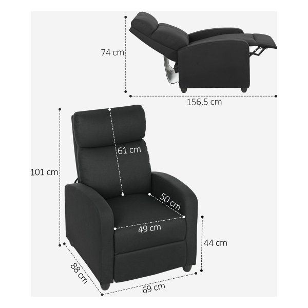 De klassieke uitstraling van deze ontspanningsstoel past naadloos in elk interieur. Of je hem nu gebruikt om te lezen, tv te kijken of gewoon te relaxen, deze stoel voldoet aan al je comfortbehoeften. De afmetingen van de stoel zorgen voor een ruime zitruimte en een perfecte pasvorm. Montage is vereist voor gebruik, maar met de duidelijke instructies is dit zo gebeurd.