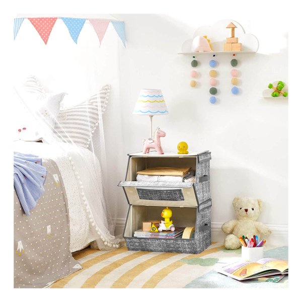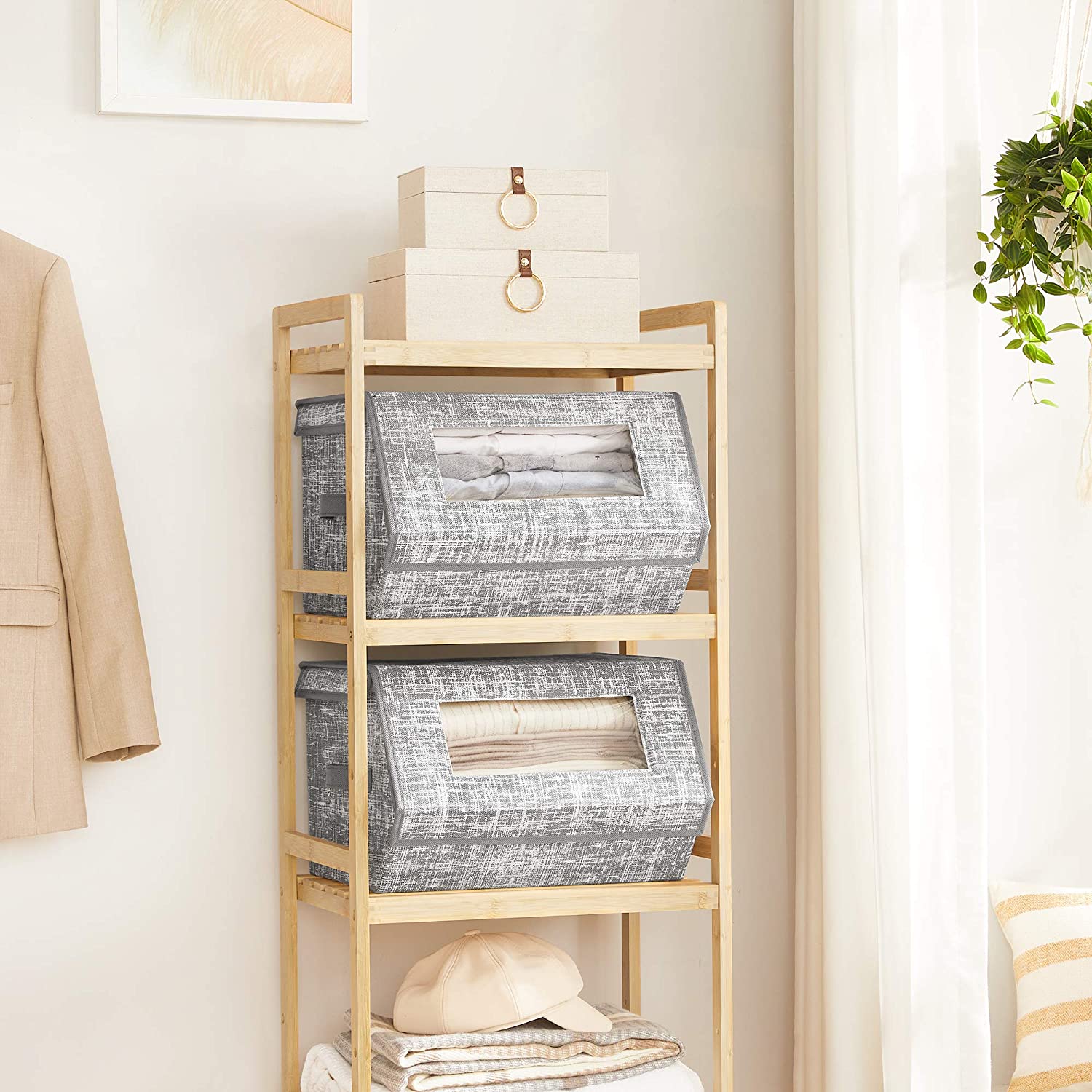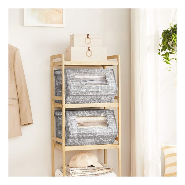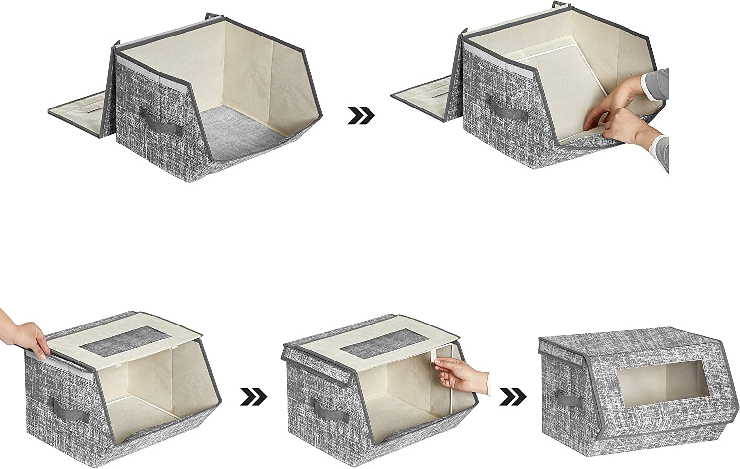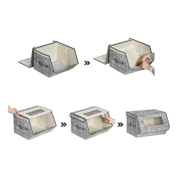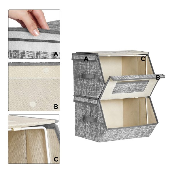 Praktische details: dankzij het doorzichtige venster heb je alles in het oog. Stapel de 2 stoffen dozen boven elkaar. Als je de onderste box opent, kun je het magnetische deksel aan de bovenste doos plakken zodat de box open blijft