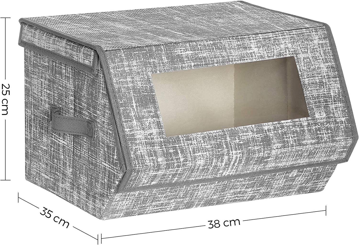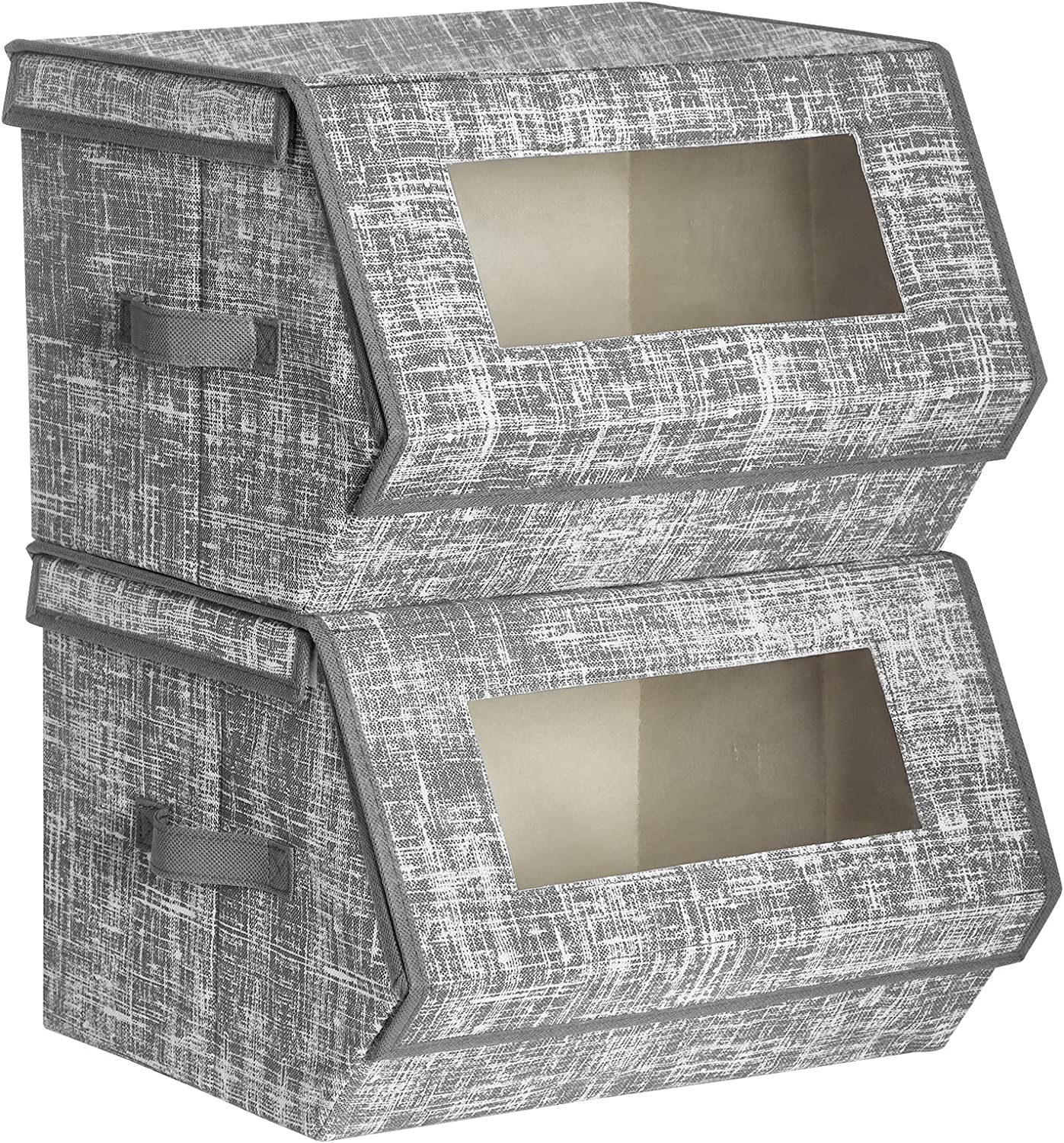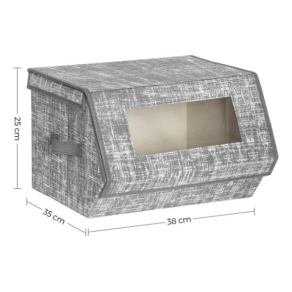 Opbergdoos Met Deksel, Set Van 2, Kastorganizer, Stapelbaar, Stoffen Box, Doorzichtig Venster, Metalen Frame, Voor Boeken, Kleding, Speelgoed, Grijs