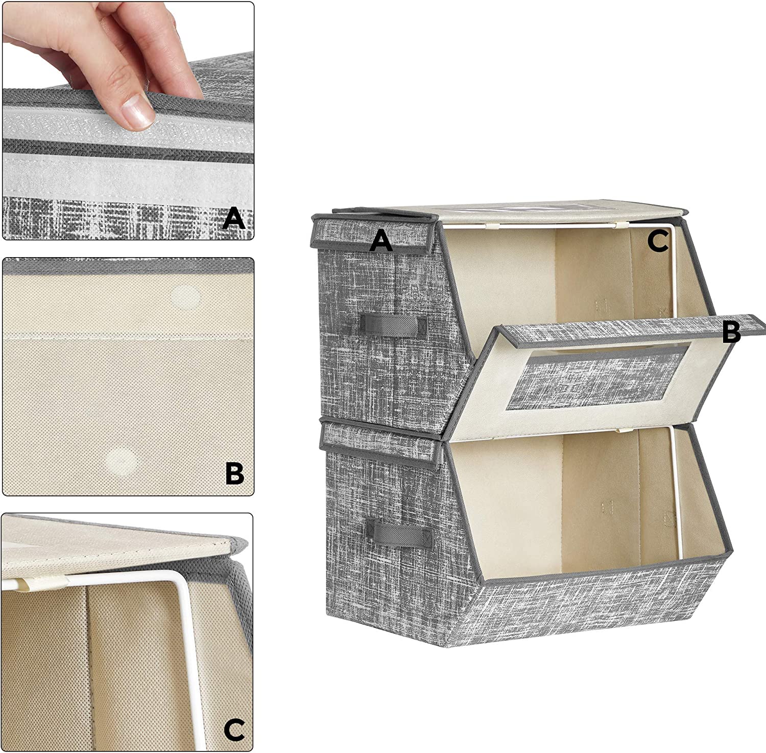 Gebruik de ruimte verticaal: gemaakt van karton, vliesstof en metalen frame – elke stoffen box is tot 10 kg belastbaar, zodat ze bij het stapelen niet vervormen. Heeft slechts weinig ruimte nodig, maar biedt veel ruimte om orde te scheppen