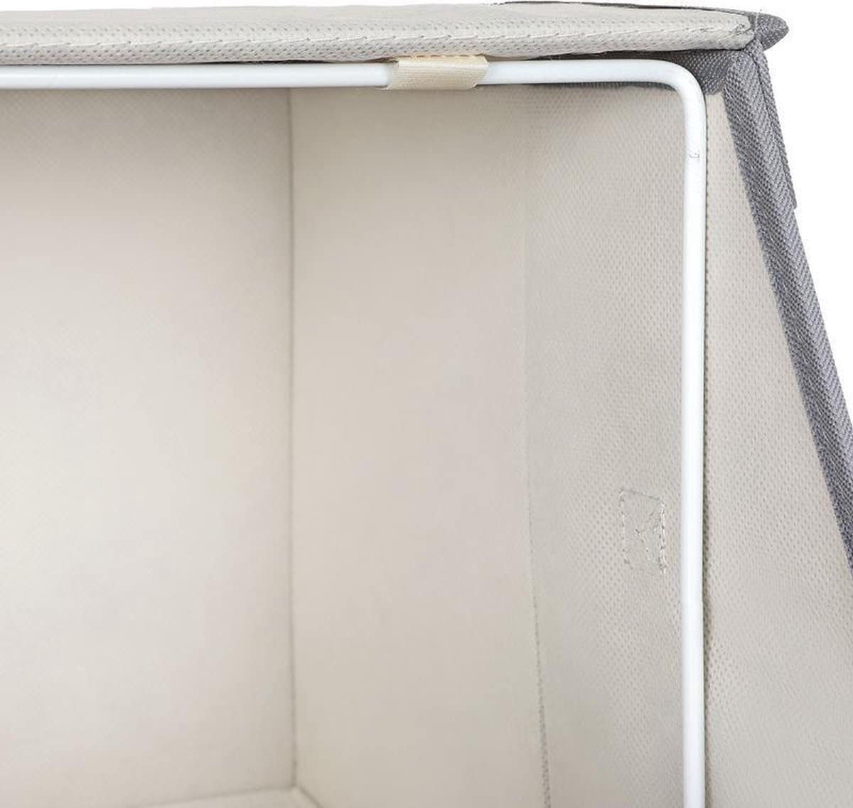 Deze stoffen dozen kunnen gestapeld worden om verticale ruimte te benutten. Het stevige frame en kartonnen structuur zorgen voor stabiliteit, terwijl de klittenbandsluiting ze verbindt. Vouw ze op als u ze niet gebruikt om ruimte te besparen.