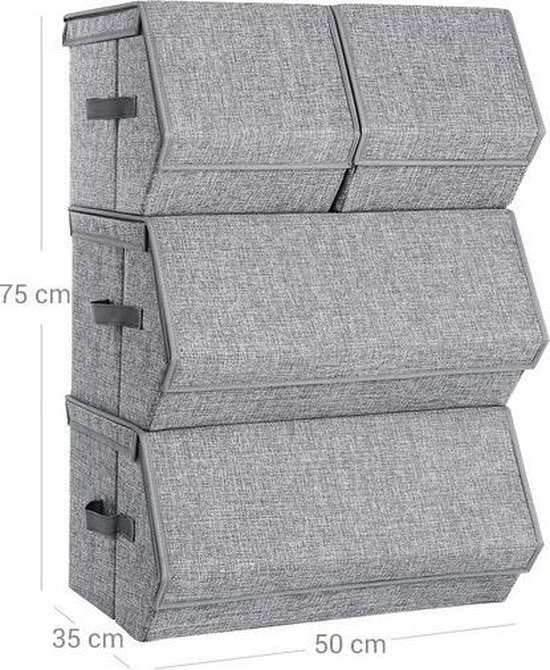 Met 2 grote (50 x 35 x 25 cm) en 2 kleine (25 x 35 x 25 cm) dozen kunt u boeken gescheiden houden van documenten of overhemden van truien, voor meer orde en gemak in uw dagelijks leven.