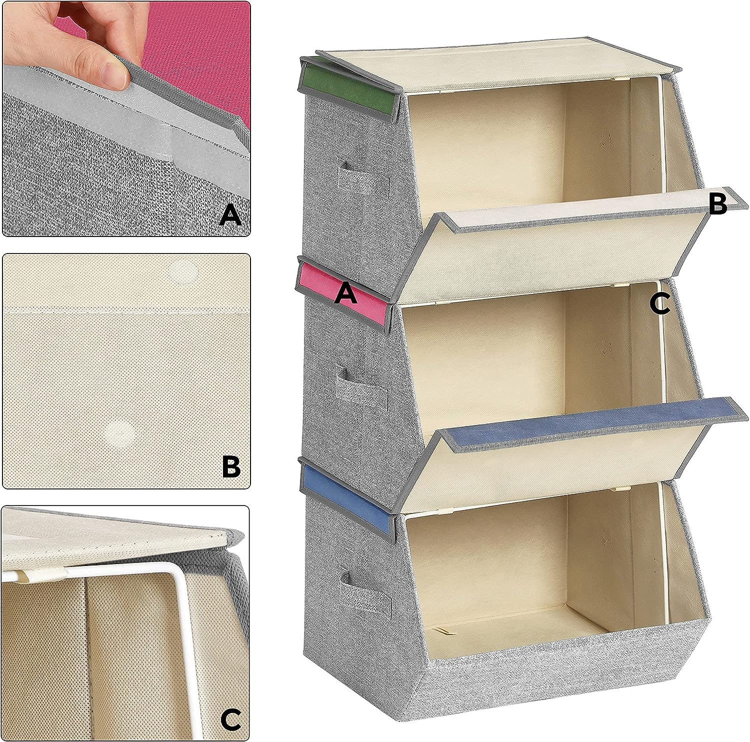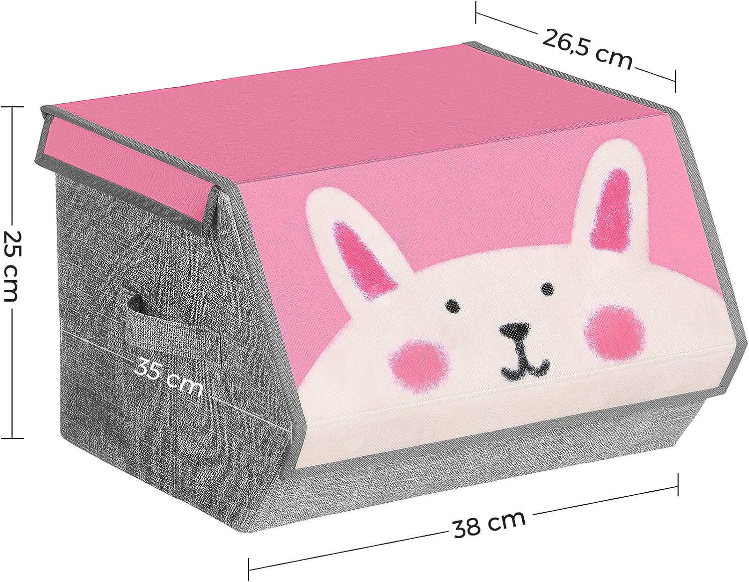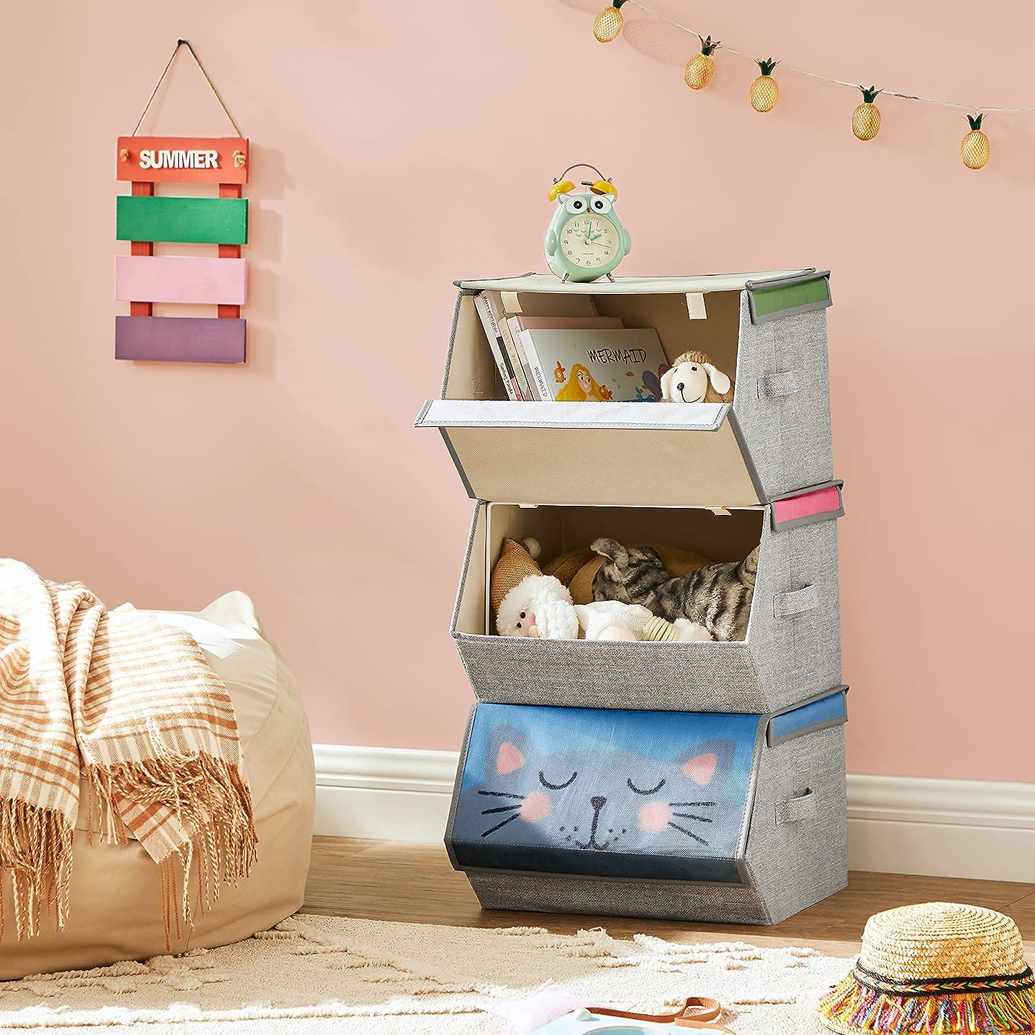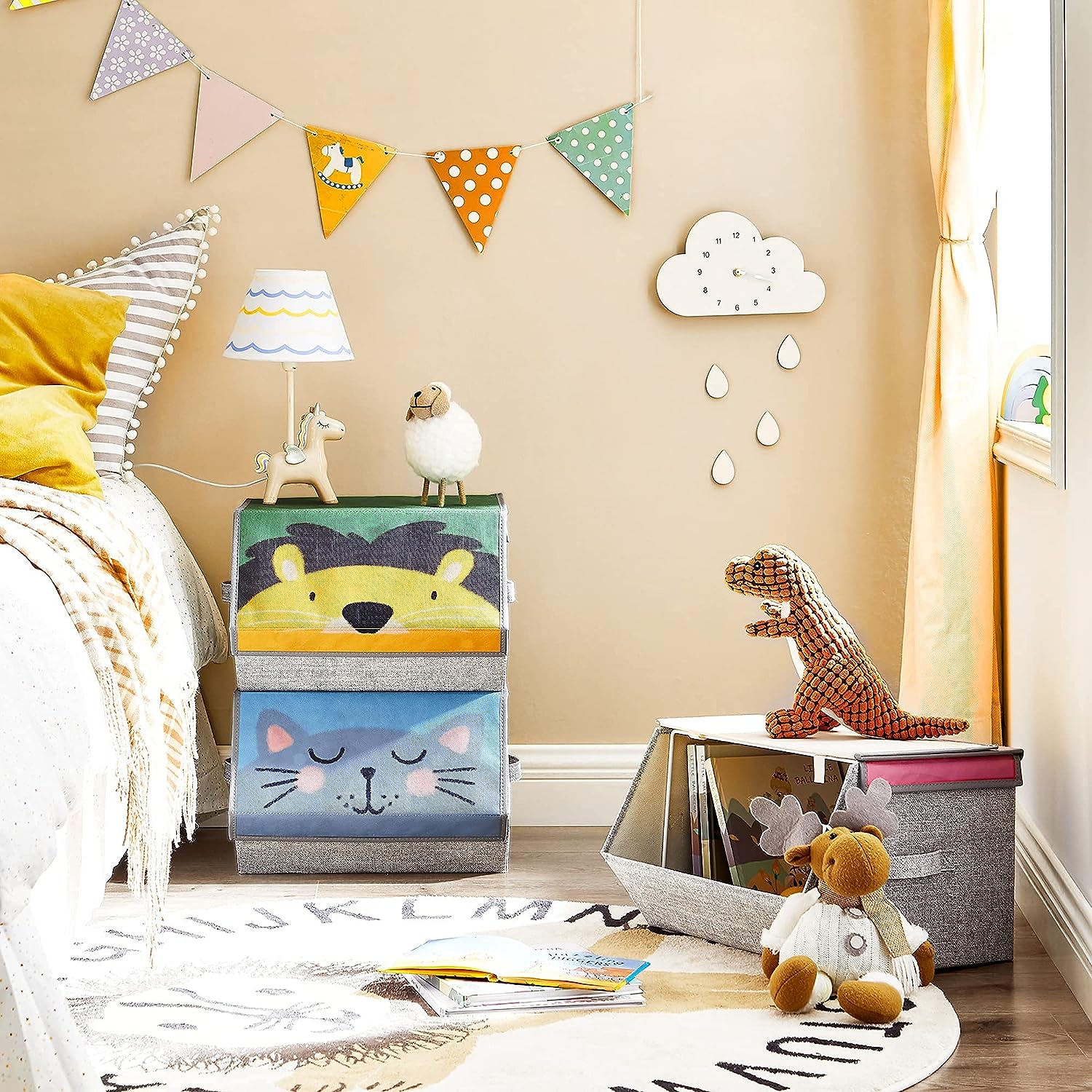 Opbergdozen, Set van 3, opvouwbare, stoffen opbergdozen, met handgrepen, Speelgoedorganizer, Magnetische deksels, voor kinderkamer, Speelkamer, Dierenthema’s, Roze en Blauw en Groen en Grijs