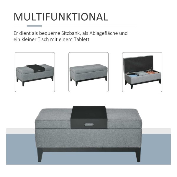 Opbergbank – ComfortLiving – Gestoffeerd – Multifunctioneel – Grijs