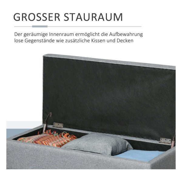 Deze opbergbank is niet alleen functioneel, maar ook een stijlvolle toevoeging aan uw interieur. Het hoogwaardige grijze gestoffeerde ontwerp past moeiteloos bij verschillende interieurstijlen en geeft uw huis een luxe uitstraling.