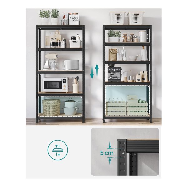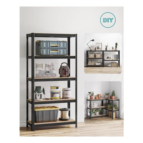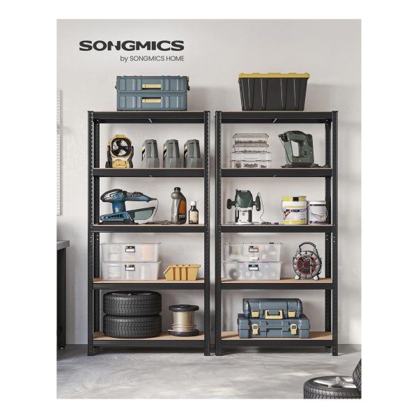 Heavy-duty, adjustable black opbergrekken with a total load capacity of 1929 lb. Split into 2 units, boltless assembly, perfect for garage or cellar storage..