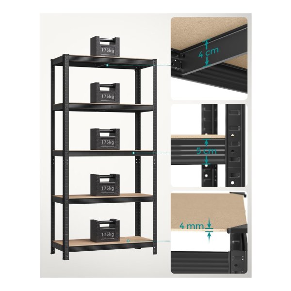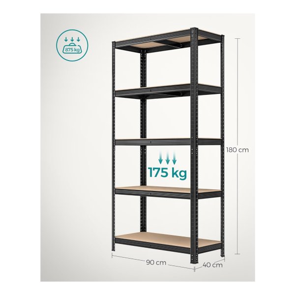 Met een royale afmeting van 40 x 90 x 180 cm en een totale draagkracht van 875 kg, zijn deze opbergrekken ideaal voor gebruik in een garage, magazijn, kelder of bijkeuken. Je kunt al je gereedschappen en apparatuur netjes georganiseerd houden.