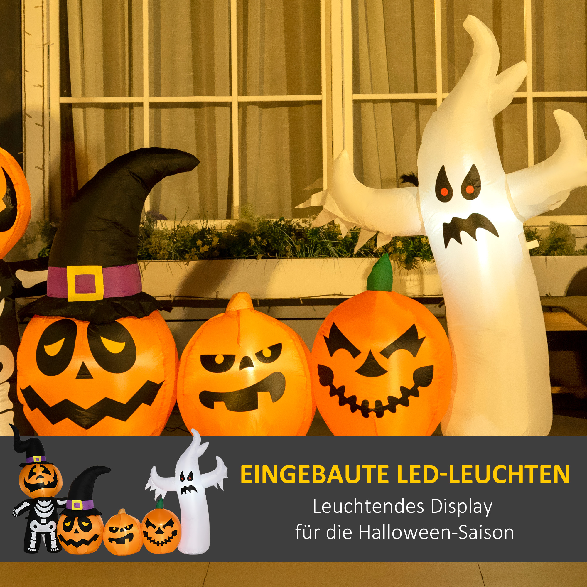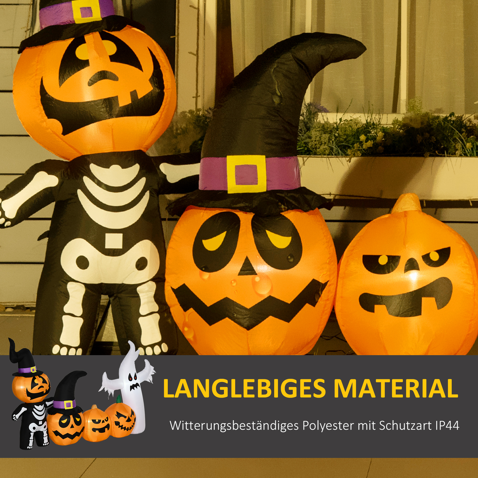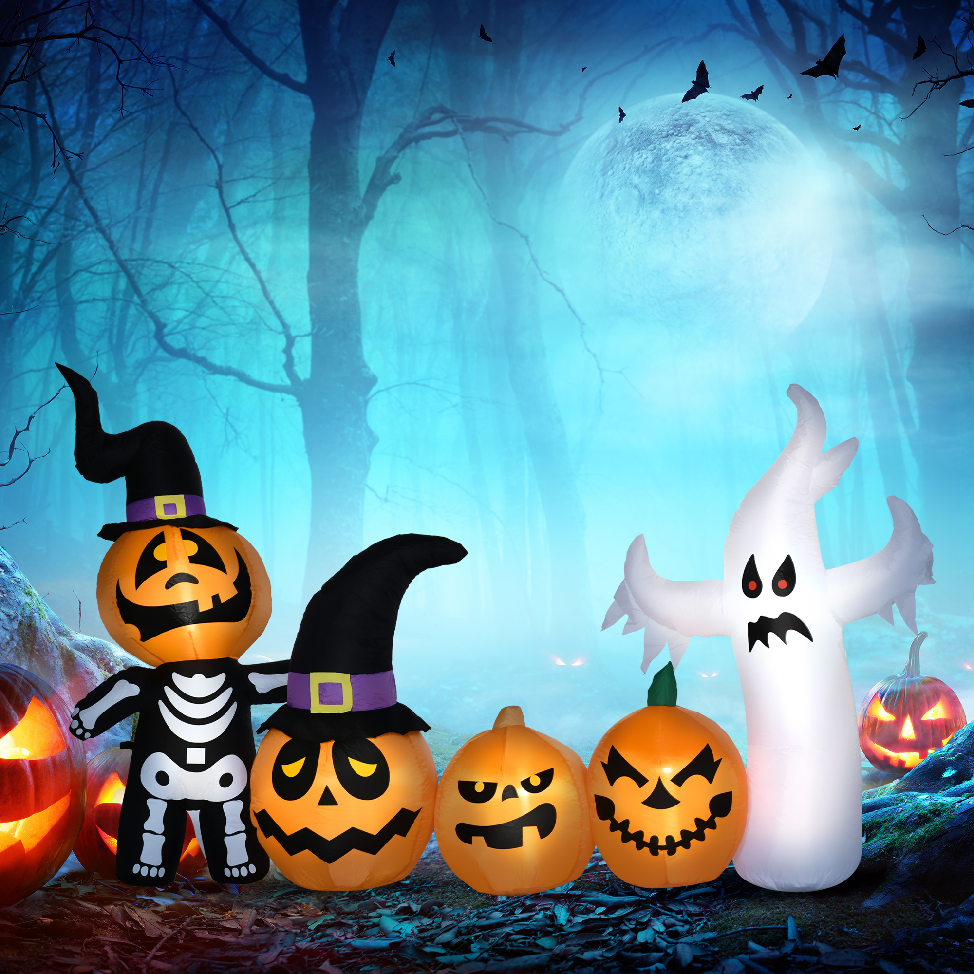 | Bullet Point 1 | Feestelijk eng: deze opblaasbare tuindecoratie met een spook, drie monsterpompoenen en een pompoenskelet bezorgt jou en je buren een feestelijke Halloween-rilling |