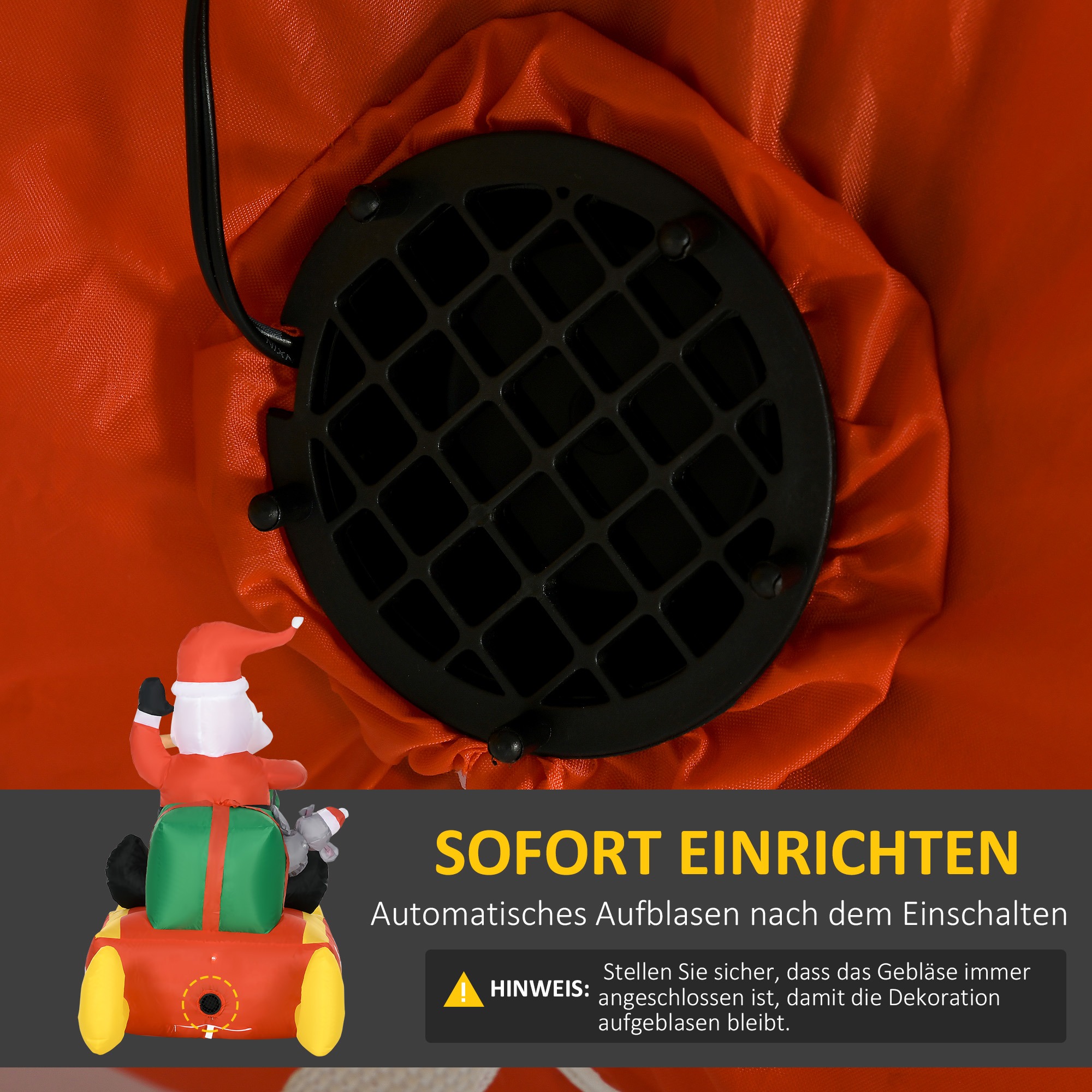 - Snel opblaasbaar: De kerstman op slee blaast binnen enkele minuten op wanneer deze in een standaard stopcontact wordt gestoken en kan snel worden verkleind voor compacte opslag.