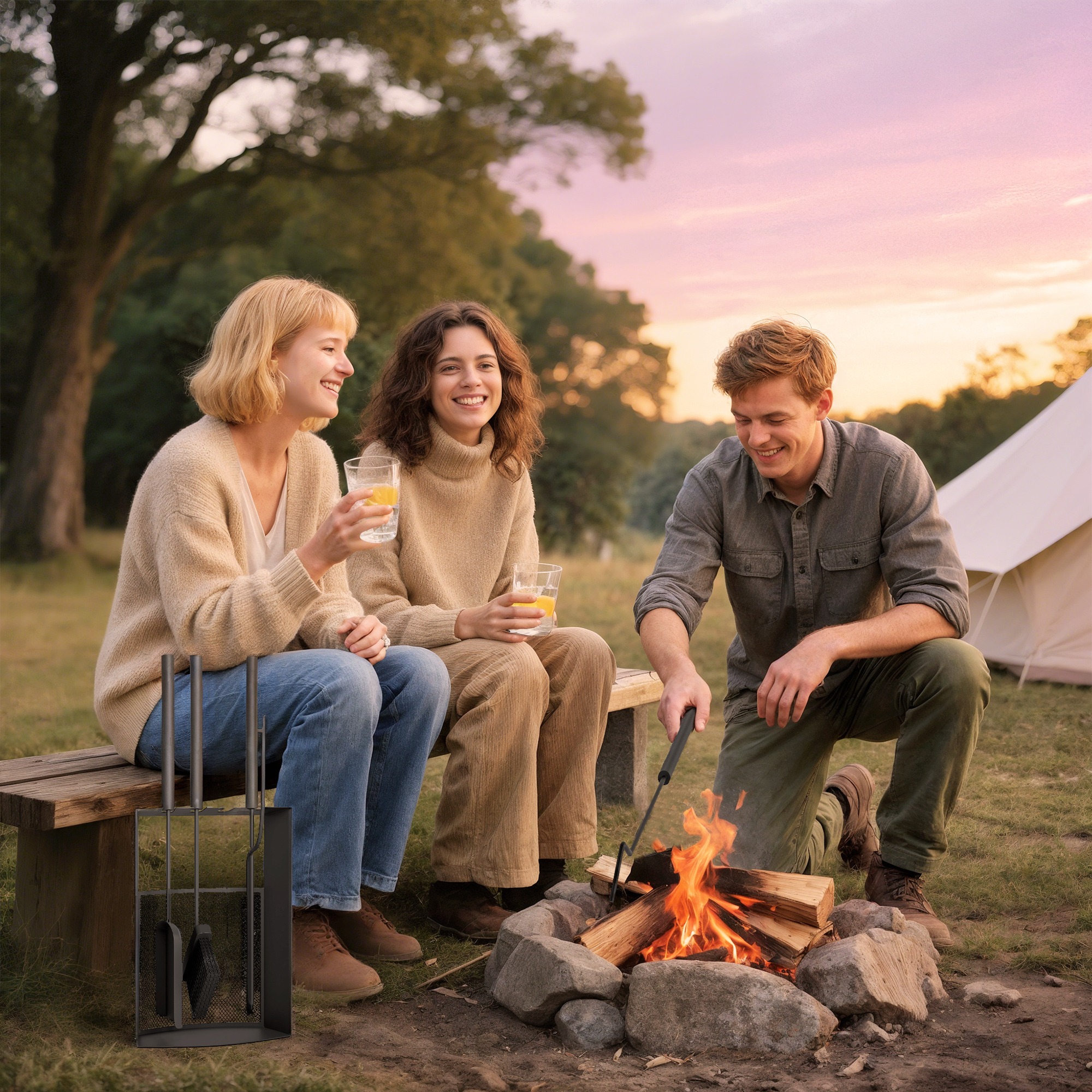 Met compacte afmetingen van 28L x 13B cm biedt deze set volledige functionaliteit zonder veel ruimte in beslag te nemen. Of u nu een binnenhaard of buitenvuurplaats heeft, deze set is ideaal voor elke omgeving. De set wordt geleverd in een complete en voorgemonteerde staat, dus u kunt direct aan de slag.