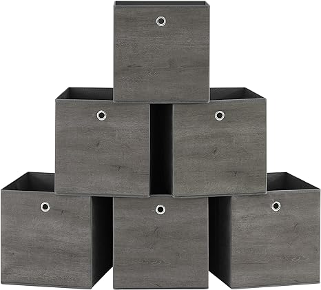 Opslagkubussen, set van 6 opslagbakken met handvat, niet-geweven stofopslagboxen, 33 x 33 x 33 cm, geschikt voor kubusopslageenheid, opvouwbaar, kledingopslag, Moggy grijs