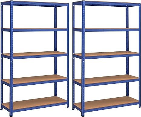 Opslagrekken, zware planken, set van 2, kelderrekken, 200 x 120 x 60 cm, tot 875 kg laadcapaciteit, boutloze rekken, versterkte stalen frame, 5 verstelbare planken, blauw