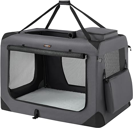 Opvouwbare hondendoos, transportdooshond, xxxl, hondentas, Oxford -stof, gaasstof, ademende draagbaar draagbaar metalen frame met handgrepen, zakken, 102 x 69 x 69 cm, grijs