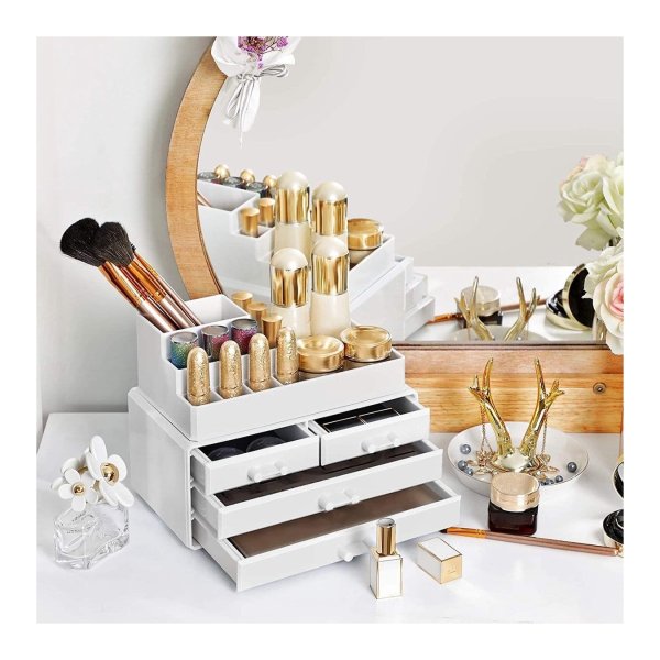 Ben je het zat om ‘s ochtends door een rommelige lade te graven op zoek naar je favoriete make-up items? Met de BeautySupplies Organizer wordt het organiseren van je cosmetica een fluitje van een cent. Deze handige organizer met 4 lades en 11 vakken biedt de perfecte oplossing voor het opbergen van al je beauty essentials.