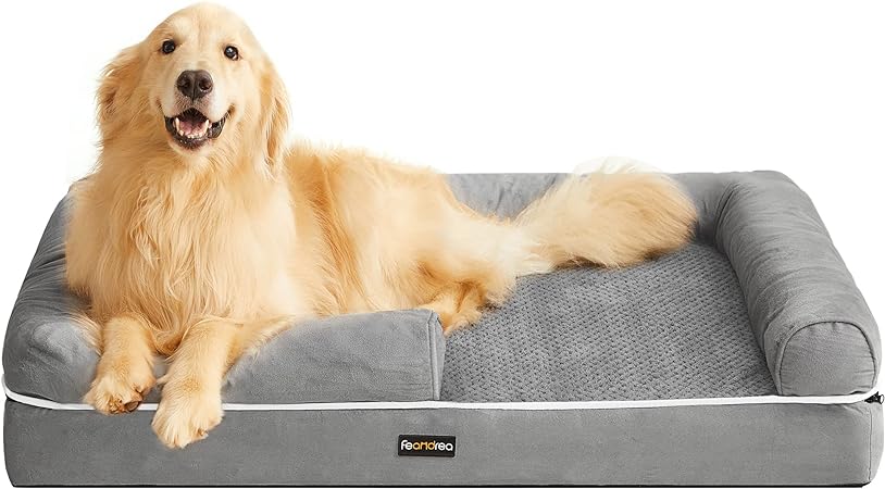 Orthopedisch hondenbed, hondenkussen, hondengrotbed, zachte vulling, hondenbank, verhoogde randen, deksel verwijderbaar en wasbaar, 106 x 80 x 25 cm, niet-slip onderkant, lichtgrijs