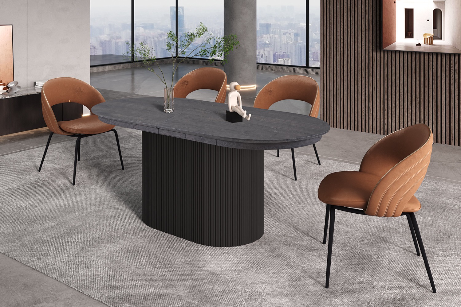De ovale uitschuifbare tafel in donkerbruin wordt geleverd met alle benodigde onderdelen voor eenvoudige montage. Naast de tafel zelf ontvangt u ook een duidelijke en gedetailleerde handleiding om ervoor te zorgen dat de montage soepel verloopt.