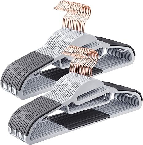 Pak van 30 plastic hangers, hoogwaardige kledinghangers met S-vorm, niet-slip en ruimtebesparing, 0,5 cm dik, 41,5 cm lang, 360 ° roteerbare haak in roségoud, grijs