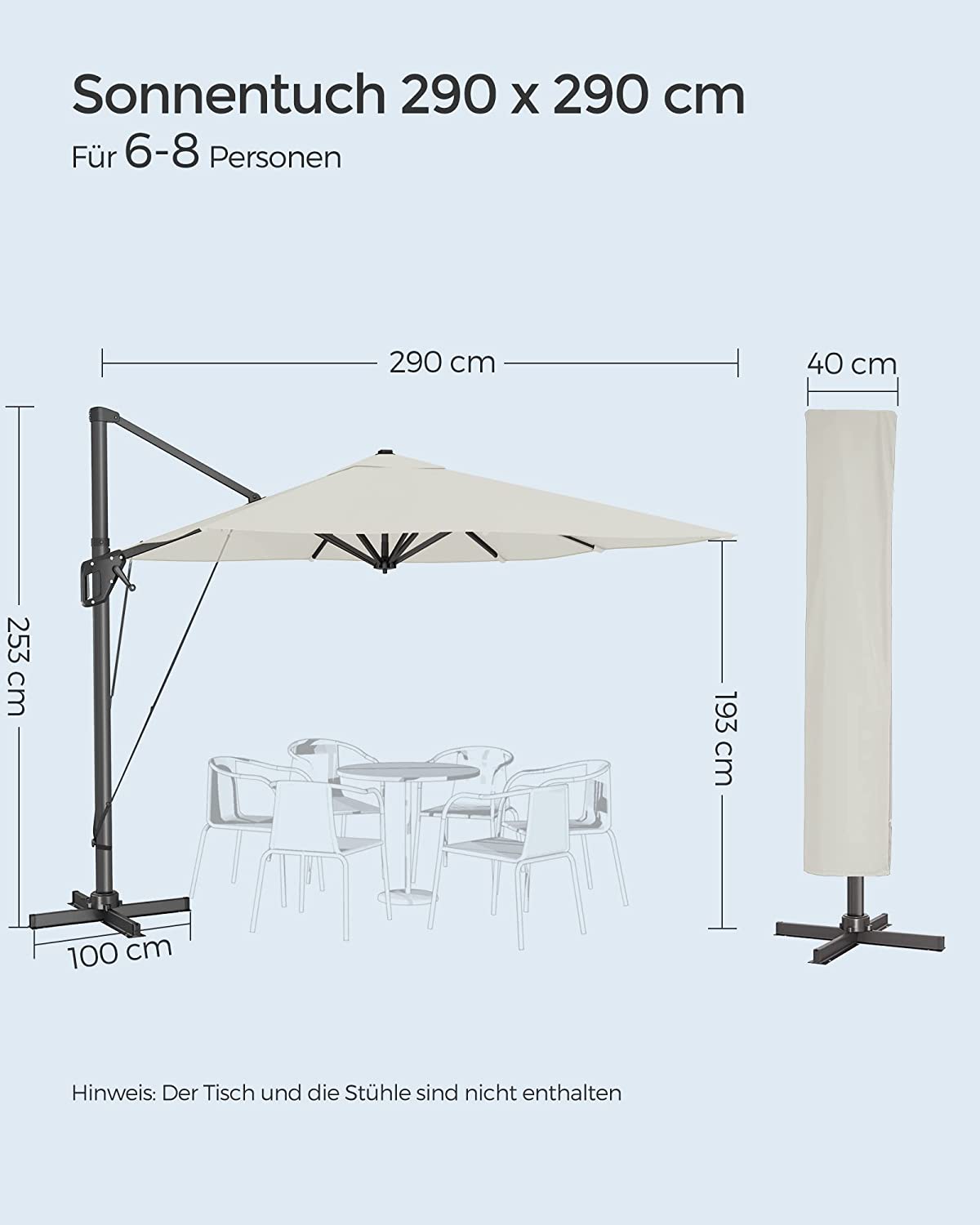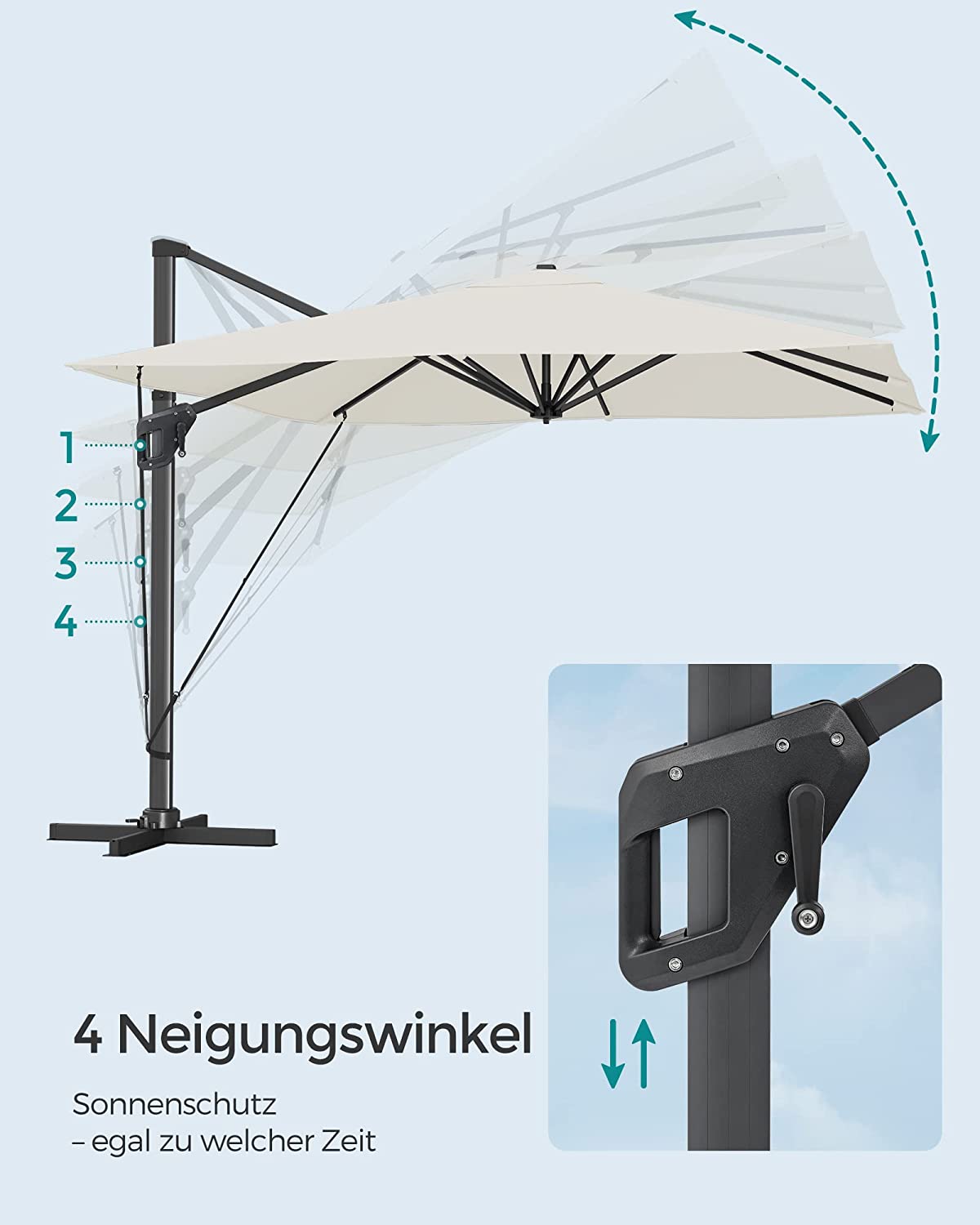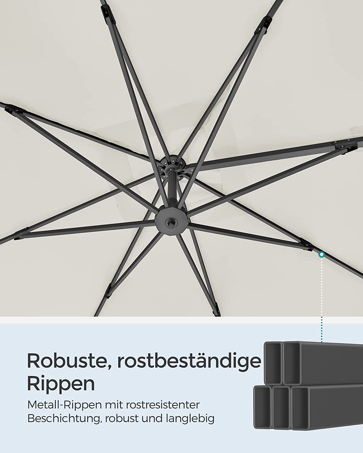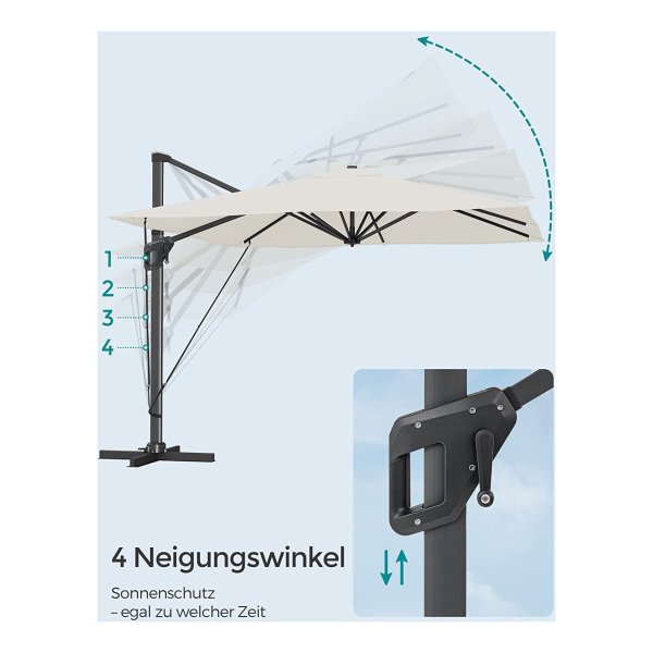 Parasol 290 X 290 Cm, Zweefparasol, Tuinparasol, Uv-Bescherming Hellingshoek Verstelbaar, Met Standaard, Bevestigingsriemen En Afdekking, Beige