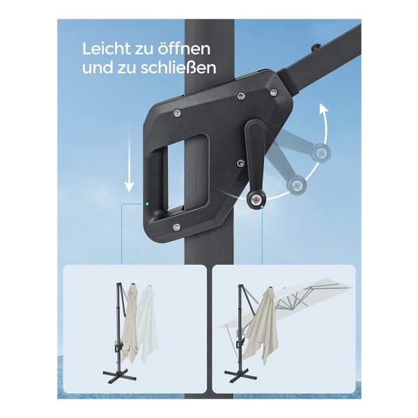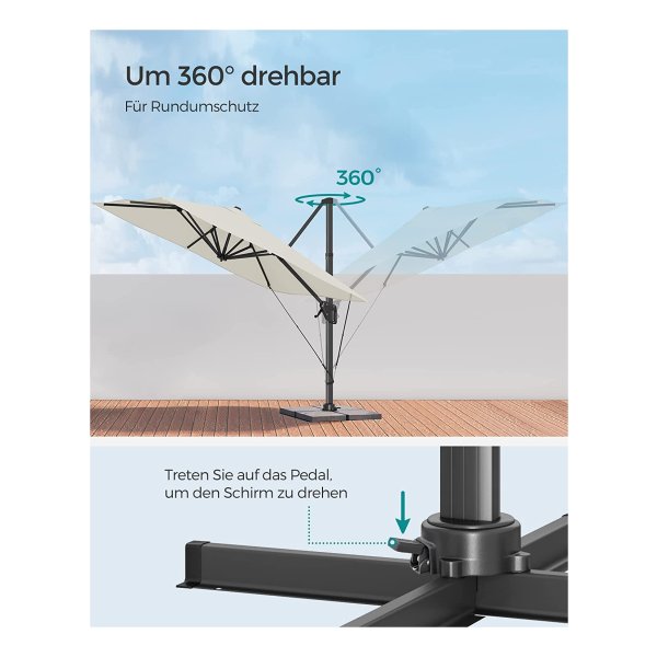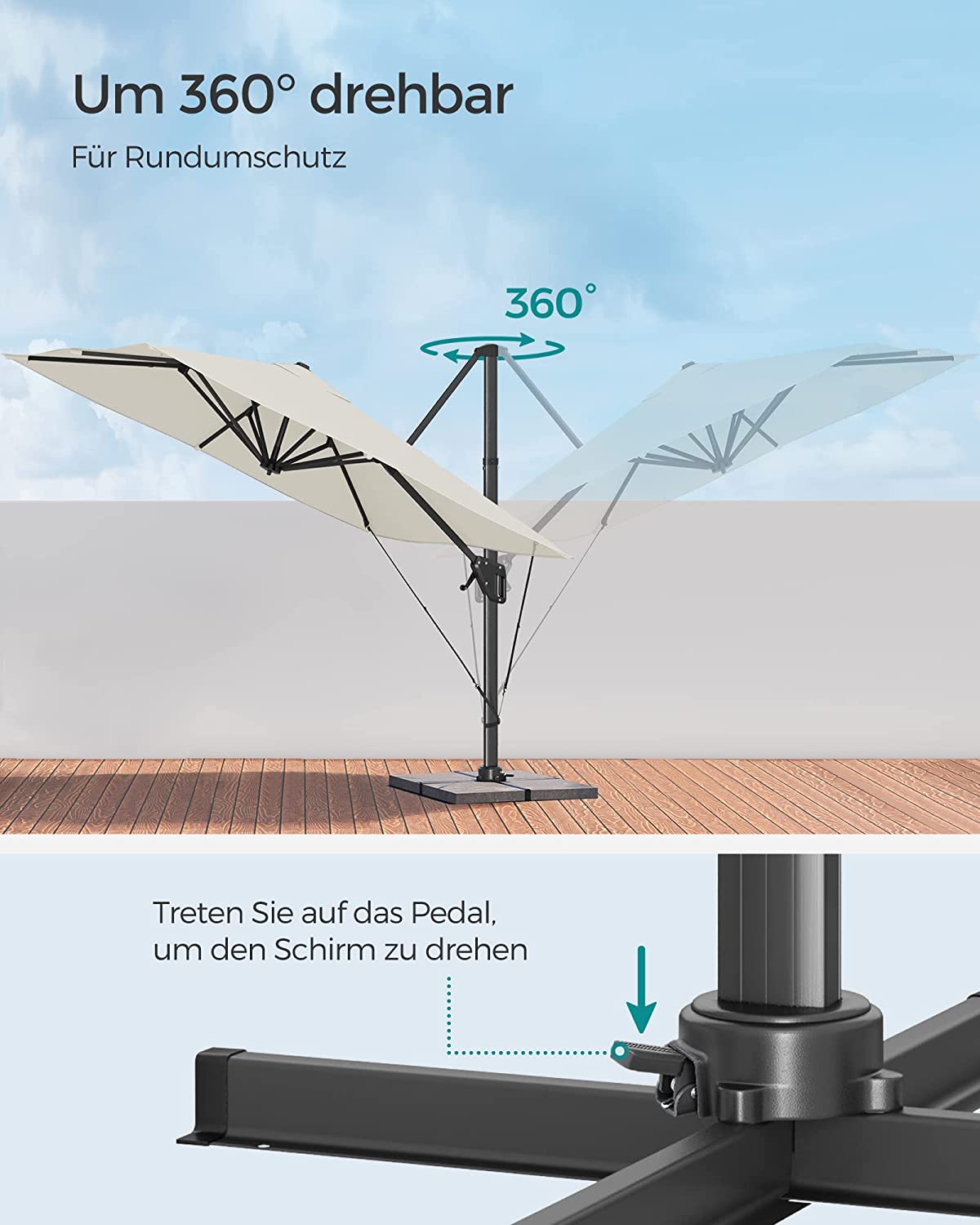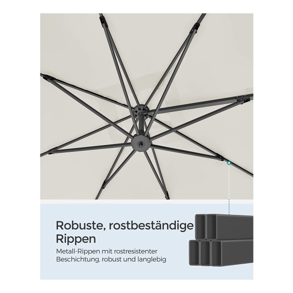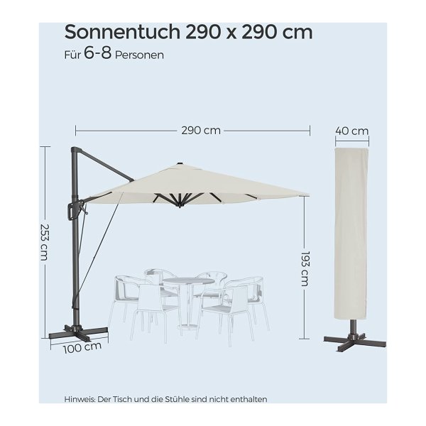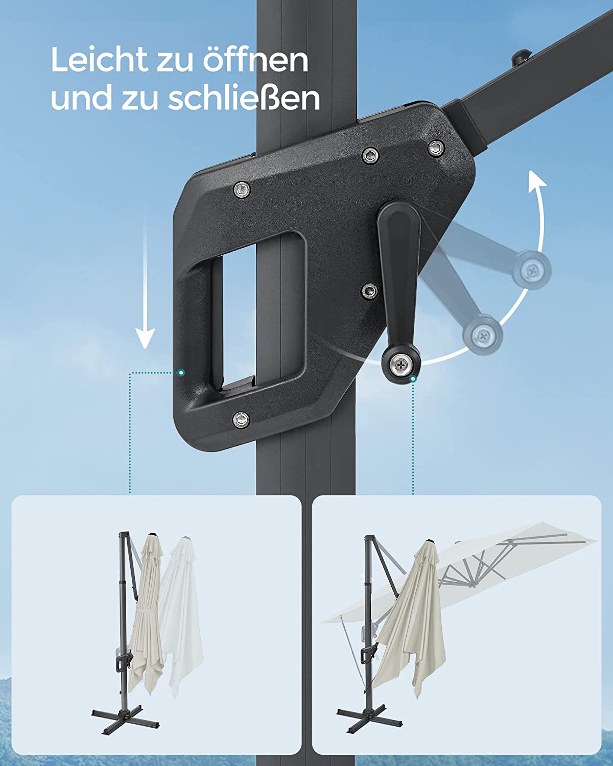 Parasol 290 X 290 Cm, Zweefparasol, Tuinparasol, Uv-Bescherming Hellingshoek Verstelbaar, Met Standaard, Bevestigingsriemen En Afdekking, Beige