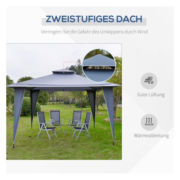 Breid uw buitenruimte uit met een ruime, beschermde plek voor feestjes en bijeenkomsten. Deze partytent combineert een waterdicht, UV-werend doek met een stabiel metalen frame en een dubbel dak voor extra ventilatie – ideaal bij zon én een buitje.