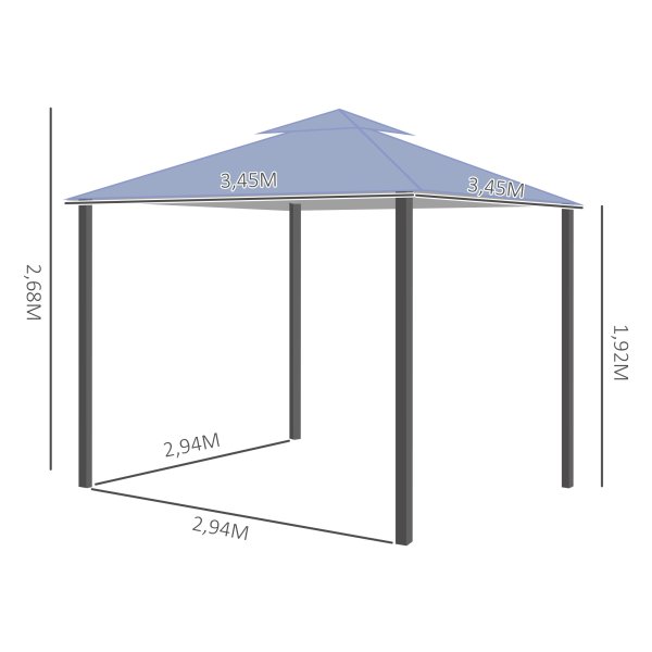 - Totale afmetingen (L × B × H): 345 × 345 × 268 cm