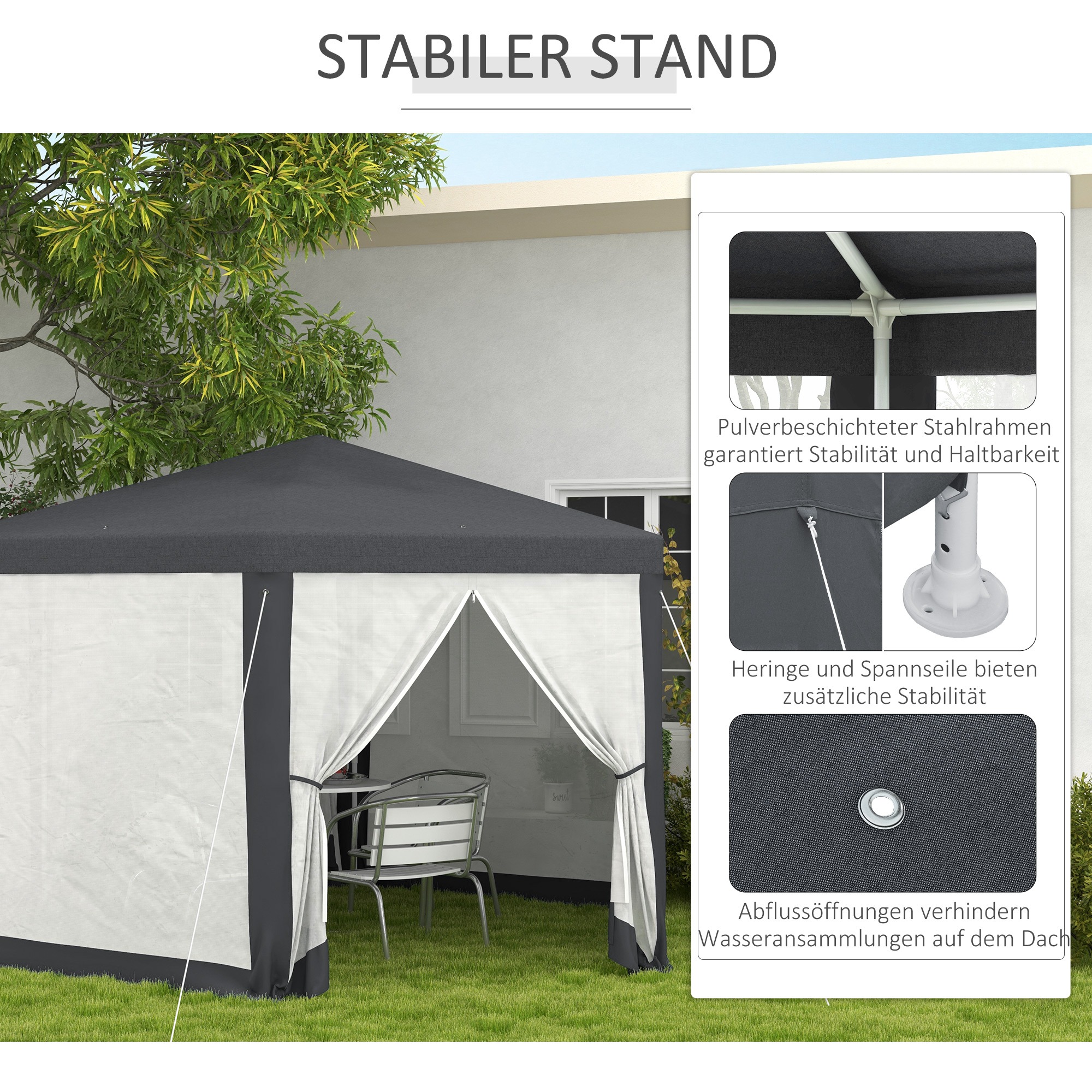 Daarnaast is het dak van de partytent gemaakt van waterafstotend polyester, wat beschermt tegen regen en intense zonnestralen. Het biedt dus niet alleen comfortabele schaduw, maar ook bescherming tegen niesbuien en UV-straling.