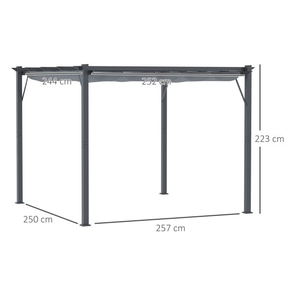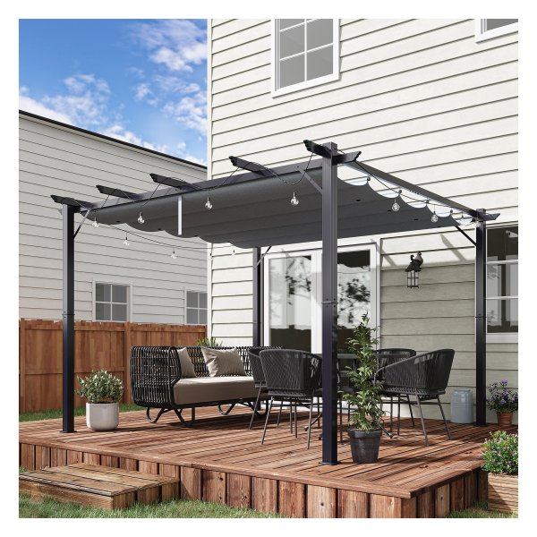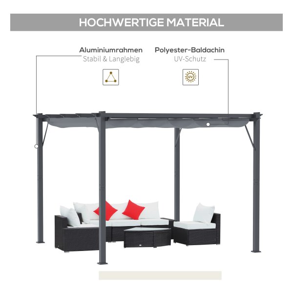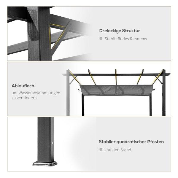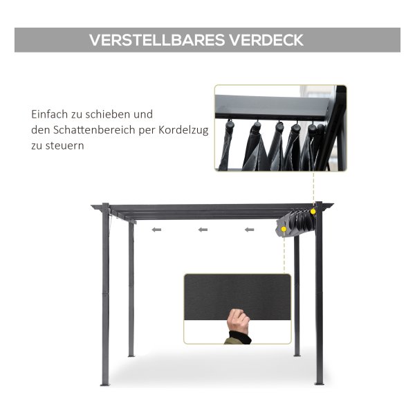 Onze hoogwaardige pergola in kool- en donkergrijs biedt perfecte bescherming tegen de zon en is ideaal voor tuin, terras of balkon. Gemaakt van sterk aluminium met verstelbaar schuifdak voor comfortabele schaduw of zonneschijn. Eenvoudig te monteren.