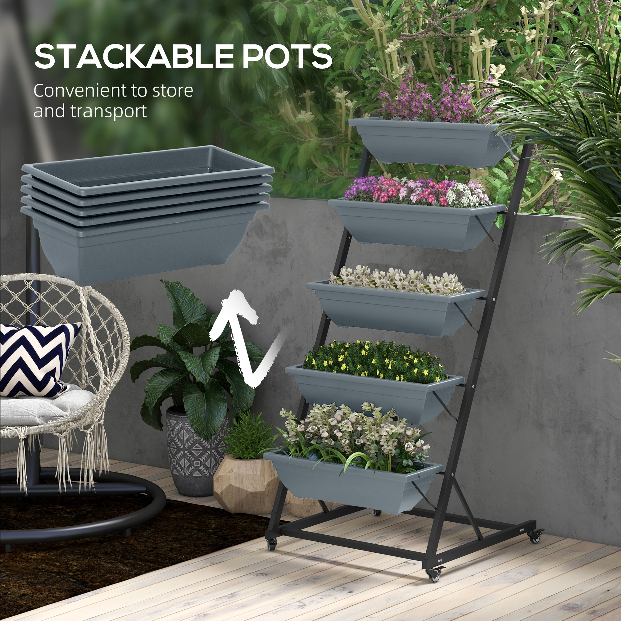Het stalen grey frame van dit rek is speciaal behandeld om bestand te zijn tegen alle weersomstandigheden, zodat u het met een gerust hart buiten kunt laten staan. Het gebruik van hoogwaardige materialen zorgt ervoor dat u jarenlang plezier zult hebben van dit plantenrek.