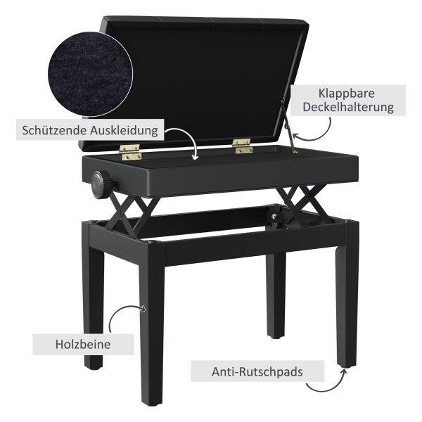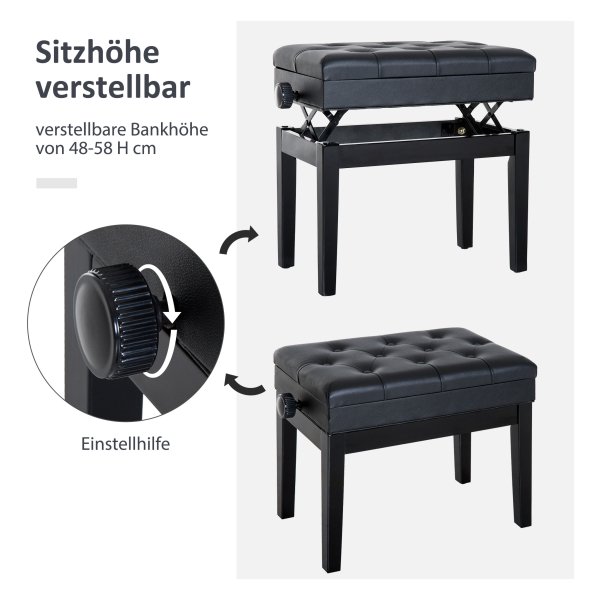 Pianokruk – Opbergvak – Verstelbare Hoogte – Zwart