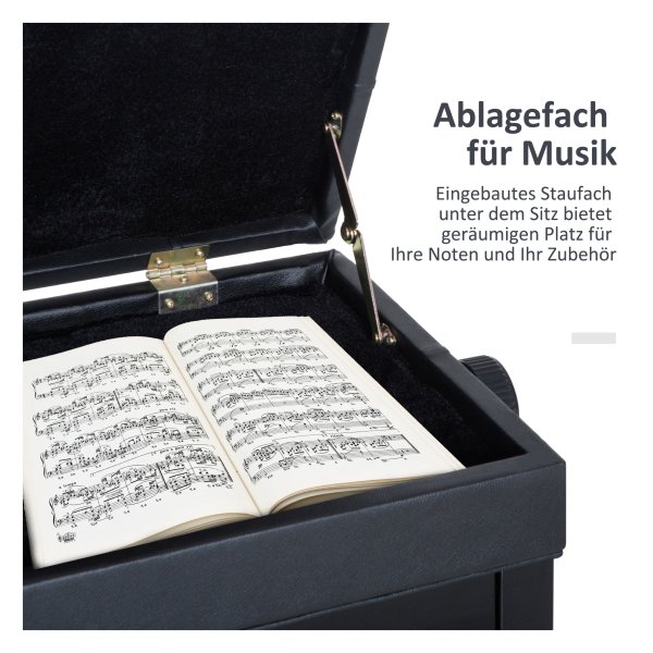 Onder de zitting van de kruk is een ruim opbergvak waar je al je bladmuziek, accessoires en benodigdheden kunt opbergen. Alles wat je nodig hebt is binnen handbereik tijdens het spelen. Zo blijf je georganiseerd en heb je een nette speelruimte.