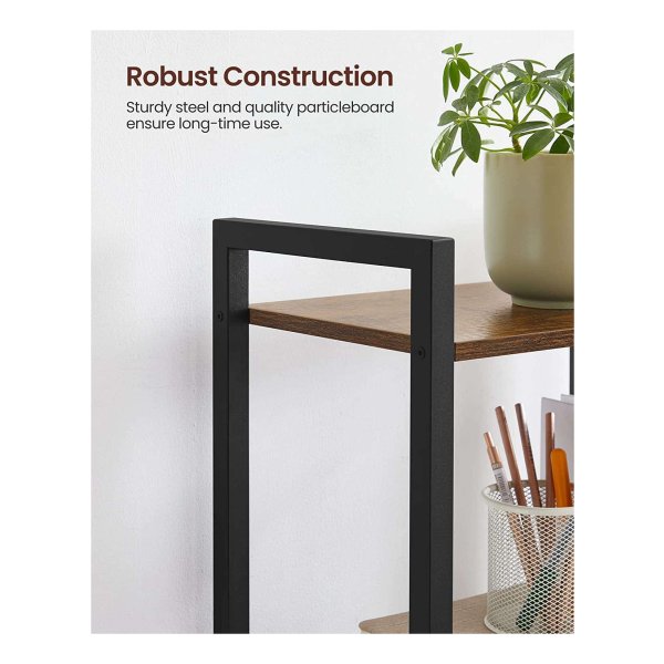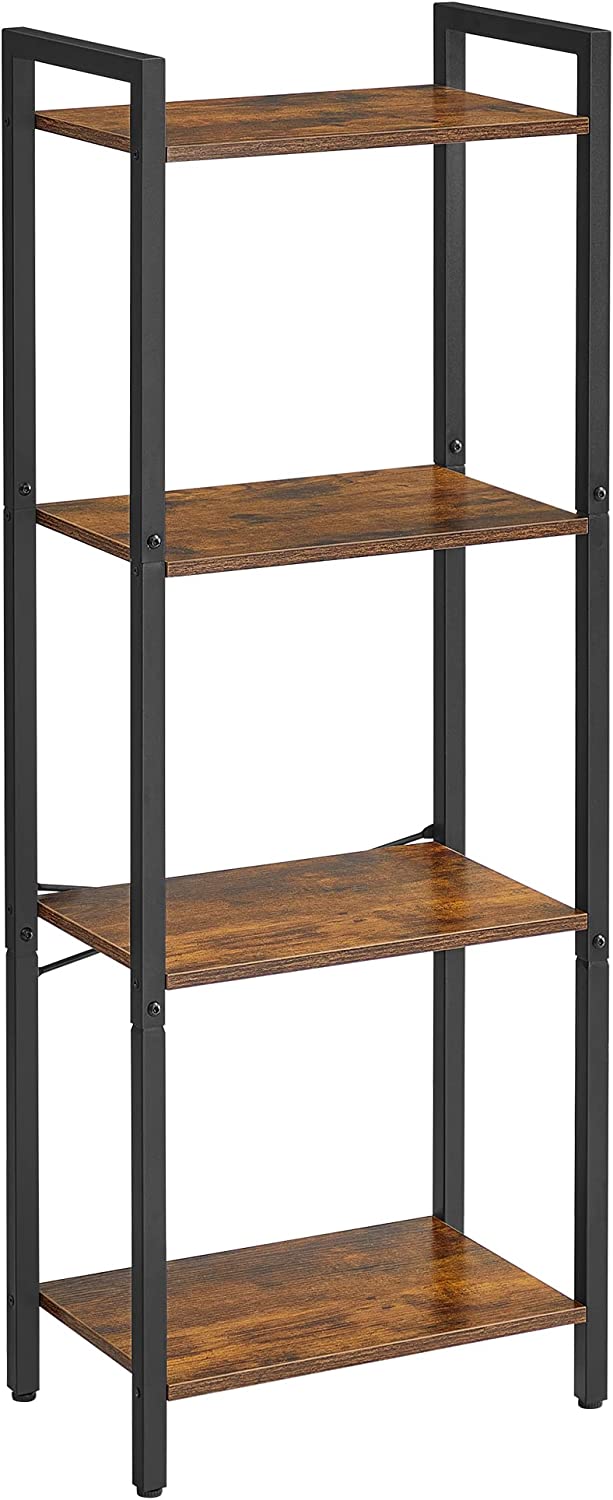 Planchet, Staande Plank Met 4 Etages, Boekenkast, Opbergrek, Stalen Frame, Vintage Bruin-Zwart