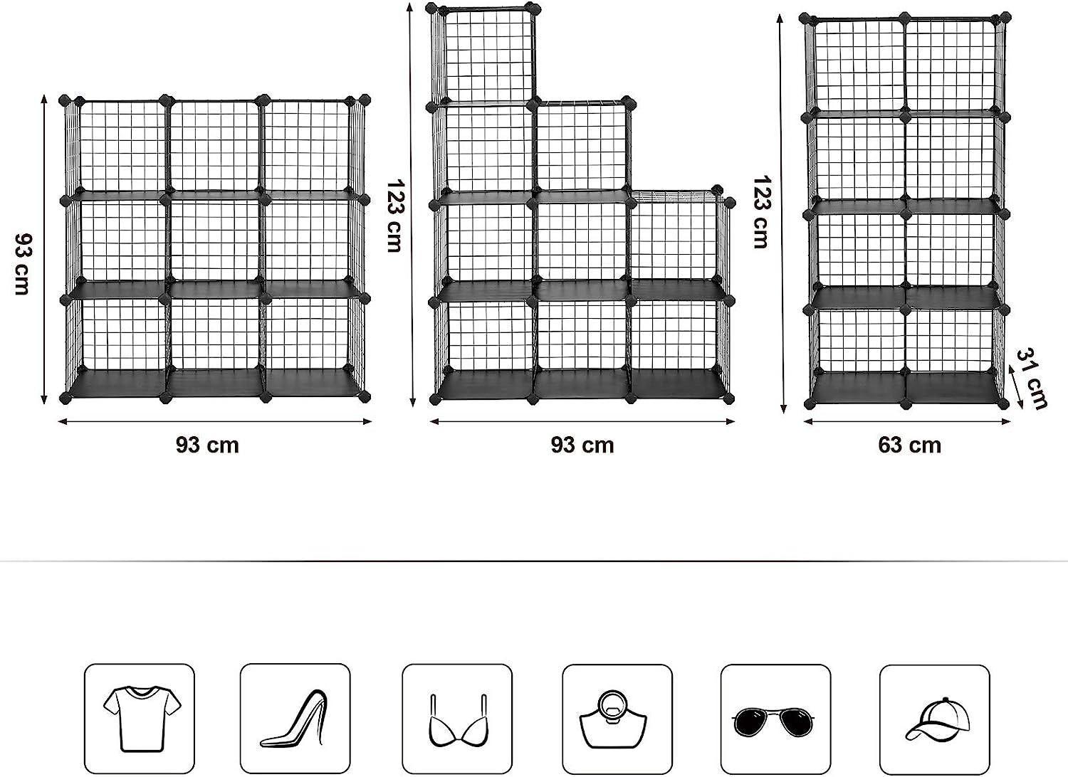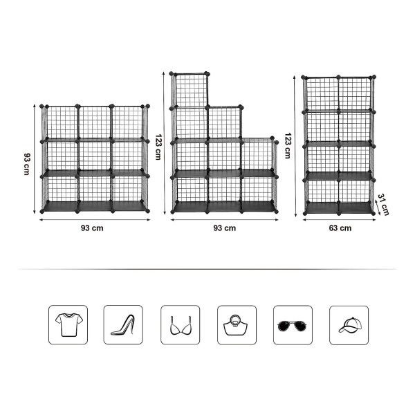 Bullet Point 3 | Veel ruimte voor veel dingen – wil je een roosterrek waarin je kleding, accessoires, souvenirs, voorwerpen of gereedschap wilt opbergen? Ons rek is ideaal voor schoenen, shirts, ondergoed, sokken, boeken, tijdschriften en nog veel meer. |
