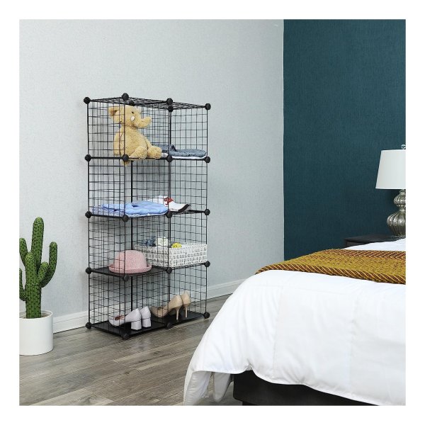 Bullet Point 2 | Flexibel en universeel insteekrek – wees flexibel met onze snel in elkaar te zetten en uit elkaar te bouwen draadrek met steeksysteem. Breng orde in de woonkamer, slaapkamer, trappenhuis, hal, kelder of balkon (niet weerbestendig). |