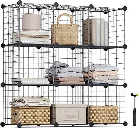 Planksysteem Insertrek afzonderlijk verstelbaar 9 compartimenten zwart gemaakt van draadmesh 93 x 31 x 93 cm (w x h x d), lpi115h, zwart, groot
