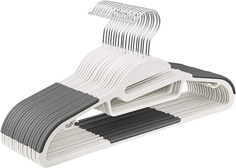 Hangers, pak van 20 plastic hangers, goede laadcapaciteit, S-vormige opening, niet-slip, dikte 0,5 cm, ruimtebesparing, haak 360 ° roteerbaar, 41,5 cm lang, wit donkergrijze