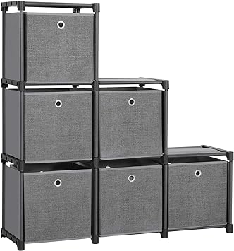 Plug-in rek 6 kubussen opbergsysteem met 6 stoffen dozen diy kast multifunctioneel met robuust metalen frame rubberen hamer 105 x 105 x 30 (w x h x d) zwart l