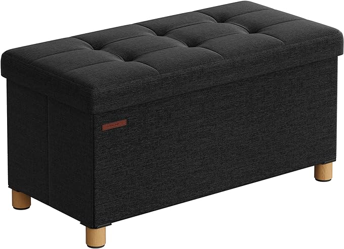 Poef Groot Zwart – Opvouwbare zwarte kruk met houten poten en opbergruimte voor woonkamer of slaapkamer – 38x76x40cm