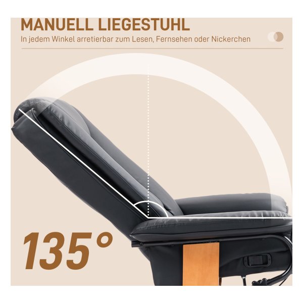 - Maximale Ontspanning: De rugleuning van de relaxstoel is verstelbaar tot 135° en de voetensteun kan apart worden bediend voor ultiem comfort.
