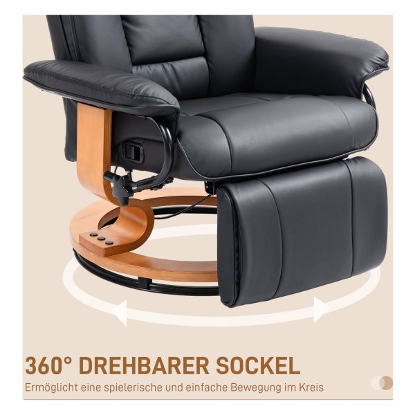 Relaxstoel – Draaibaar – Kunstleder – Zwart