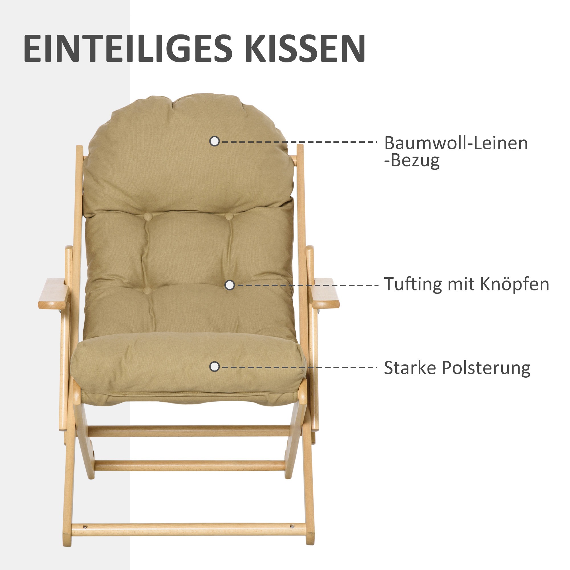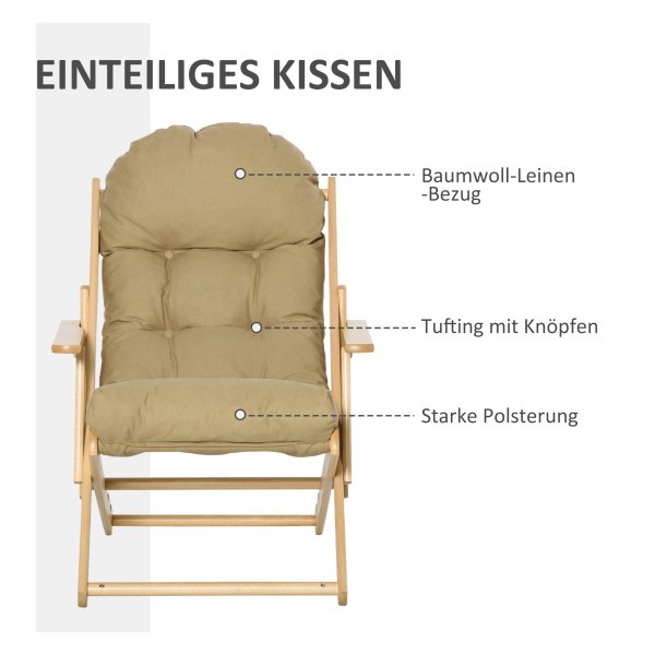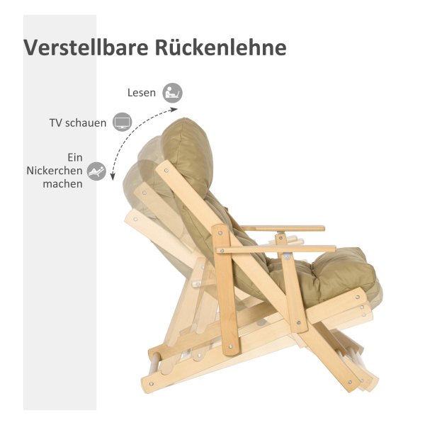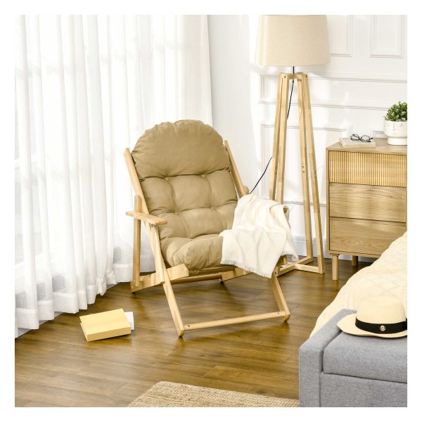 Bullet Point 2 | Geniet van uitzonderlijk comfort met de HOMCOM Relaxfauteuil met natuurlijk-authentiek design. Met zijn rijk bekleed stoffen kussen en drie keer verstelbare rugleuning biedt deze fauteuil optimaal comfort. Het inklapbare ontwerp bespaart ruimte en past perfect in kleine ruimtes. De fauteuil heeft een ergonomisch ontwerp, een robuuste beukenhouten structuur en een zachte stoffen kussenhoes. Het natuurlijke design voegt stijl toe aan elke woonruimte en de fauteuil is eenvoudig te monteren. |