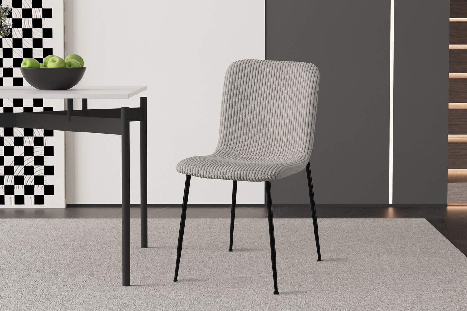 Kortom, deze ribfluwelen stoel in lichtgrijs combineert stijl, comfort en duurzaamheid in één. Waar wacht je nog op? Haal deze prachtige stoel vandaag nog in huis en geniet van ultiem zitcomfort!