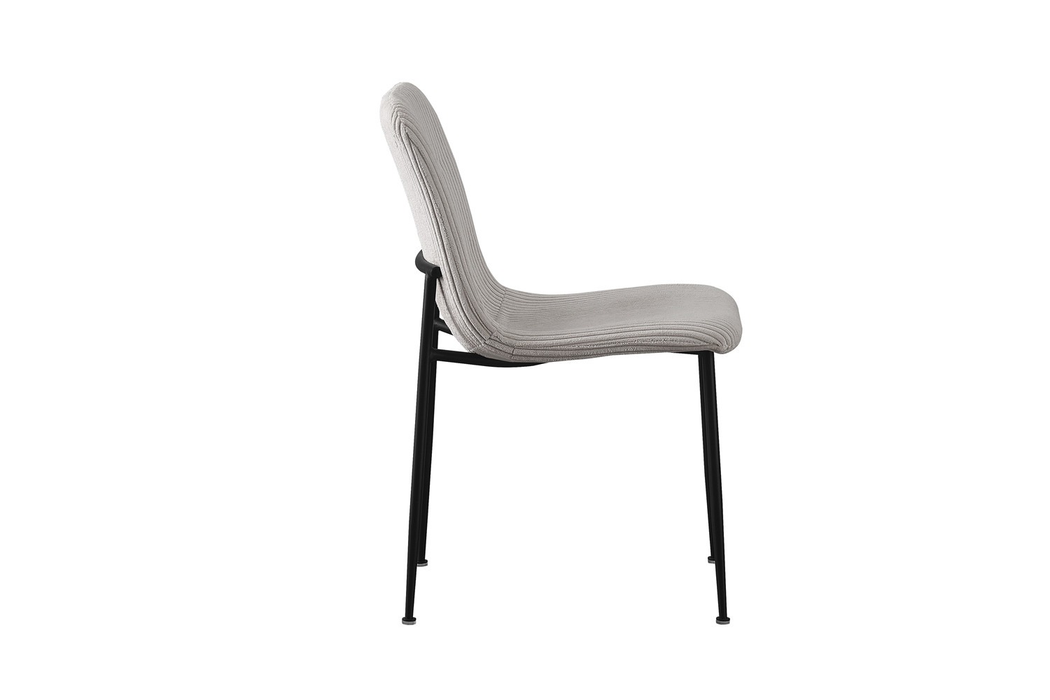 De stoel is gemaakt van hoogwaardig ribfluweel dat niet alleen comfortabel is, maar ook duurzaam en gemakkelijk te onderhouden. Het lichtgrijze ribfluweel geeft de stoel een eigentijdse uitstraling die perfect past bij elk interieur.