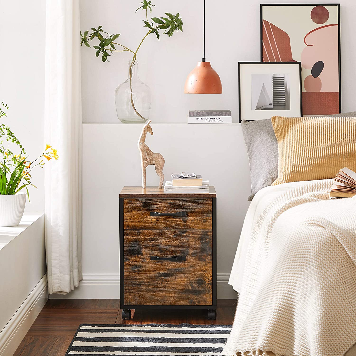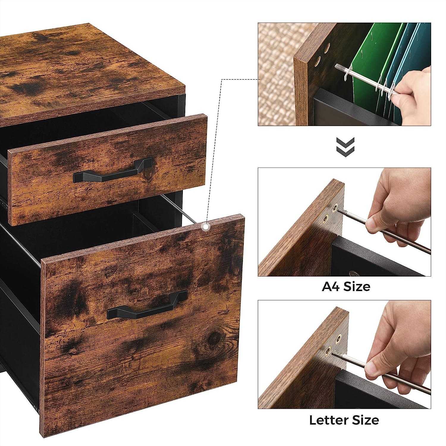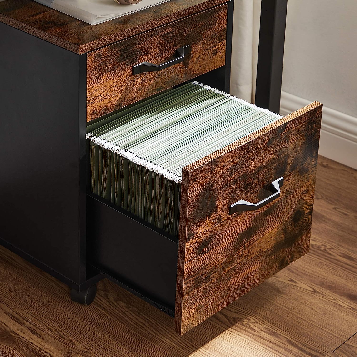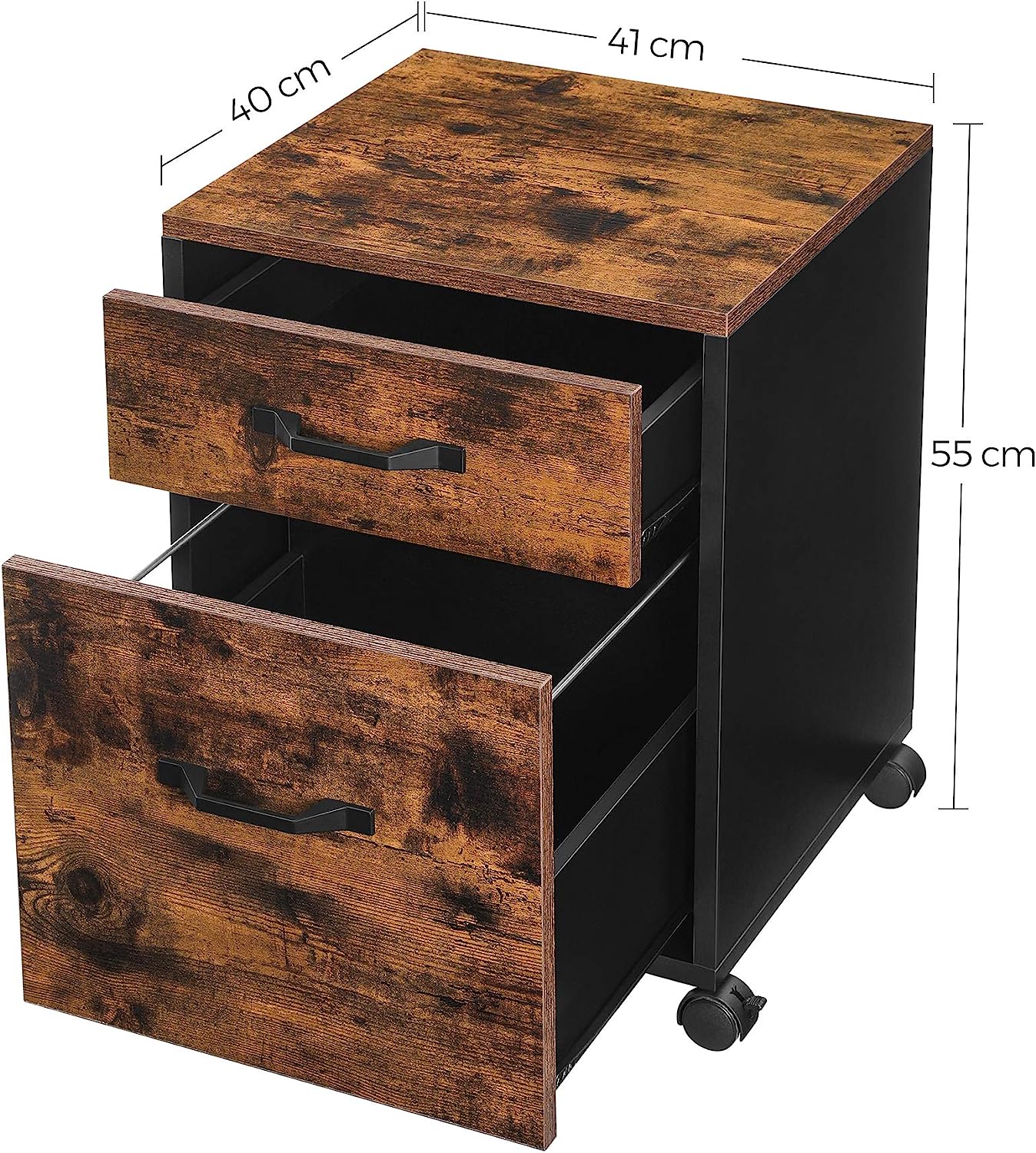 Industrieel Design Rolcontainer Met 2 Laden, Wielen En Hangmap Voor Documenten İn Dın A4 En Briefformaat – Vintage Bruin-Zwart