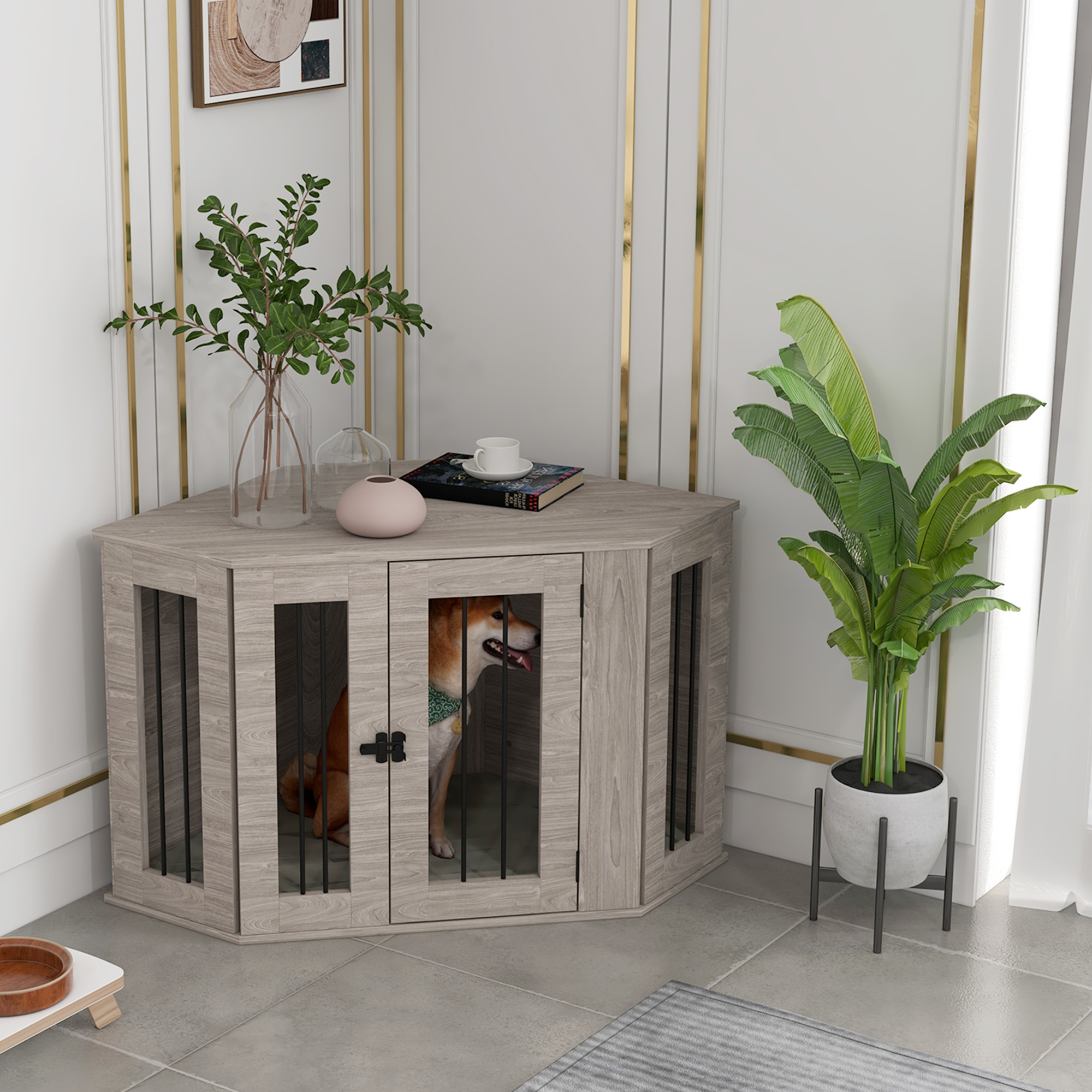 Met de grote toegangsdeur kan uw hond moeiteloos in en uit het hondenhok stappen, waardoor het een aangename en toegankelijke plek voor uw huisdier is. Het zachte ligkussen is gemakkelijk schoon te maken en zorgt voor extra comfort voor uw hond. Dit hondenhok is niet alleen een functioneel onderkomen voor uw hond, maar ook een stijlvolle toevoeging aan uw interieur.