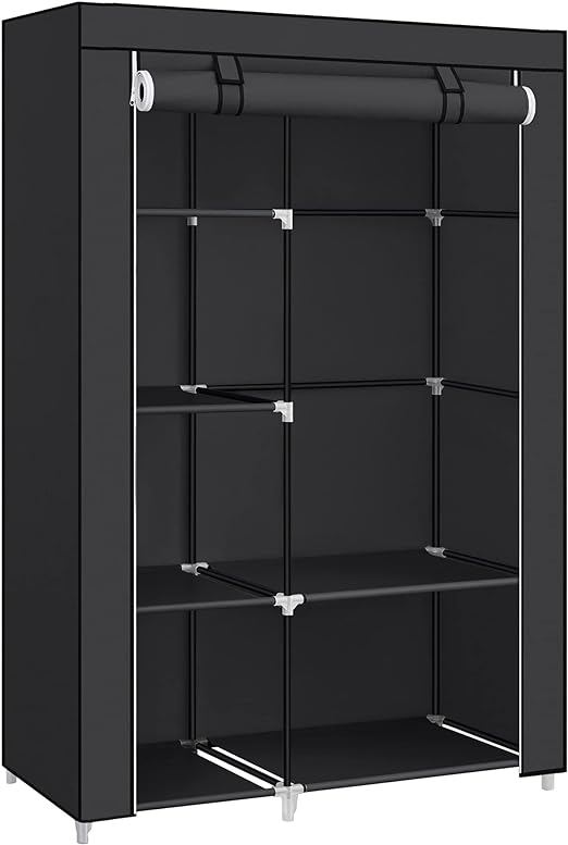 Kledingkaste Rek met 1 kleding Rail 6 planken niet-geweven metalen frame 45 x 105 x 168 cm voor slaapkamergang Black