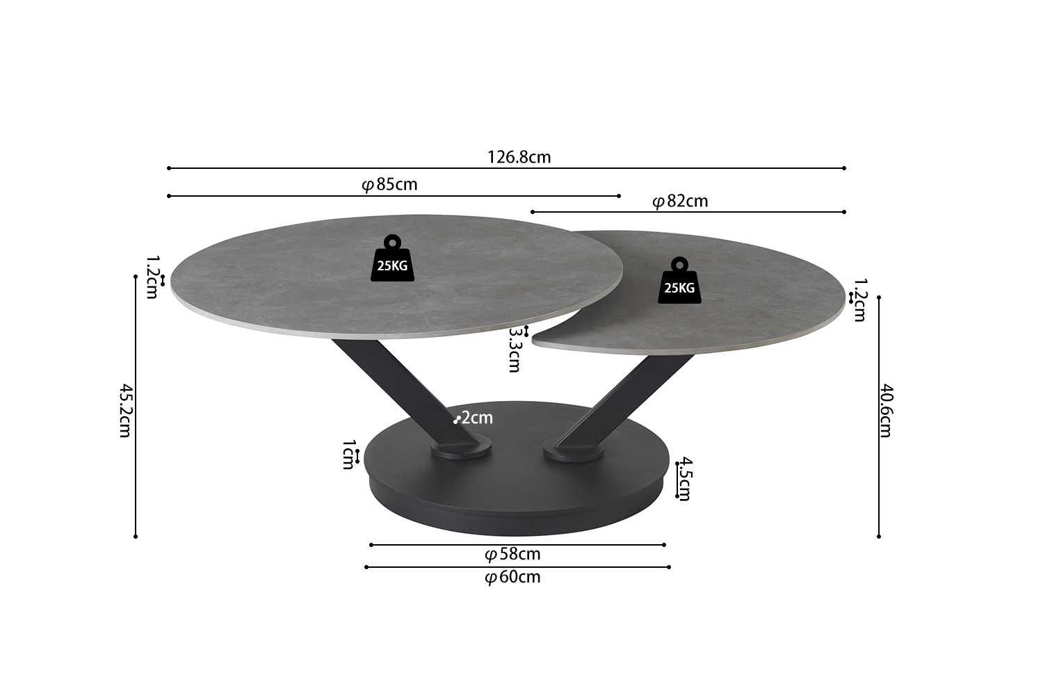 Ronde salontafel “Nara” in lichtgrijs steen, draaibaar en met een top van 12 mm dik. Afmetingen van 45 x 85 x 85 cm. Perfect voor elke woonkamer!.