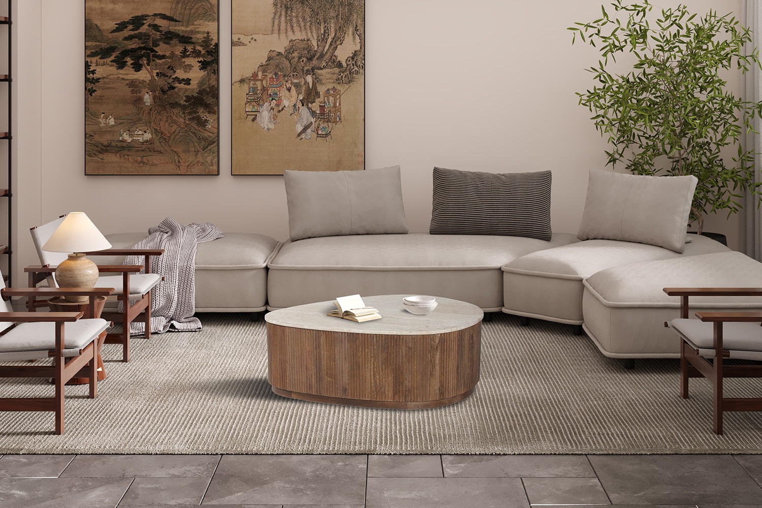 Salontafel – Mangohout en Travertin – Beige